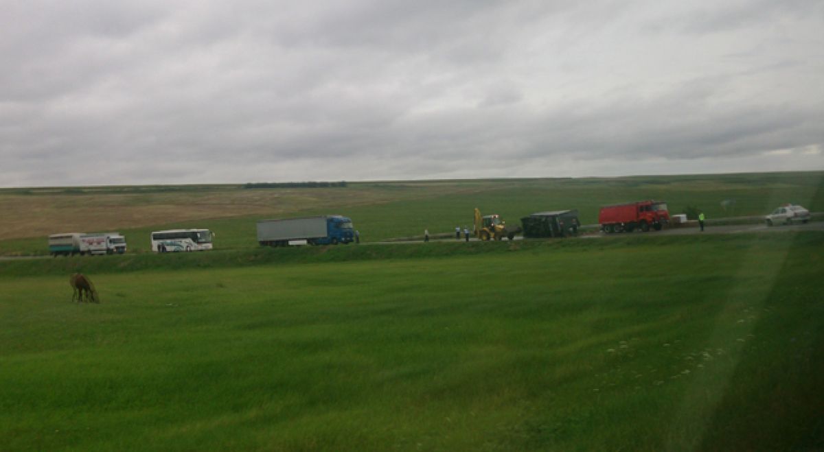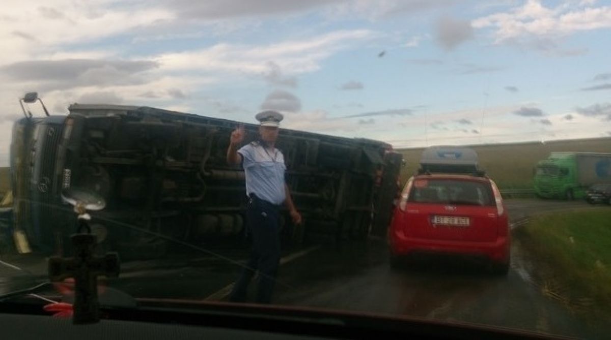 Trafic îngreunat la Deleni, județul Iași în această dimineață după ce un camion s-a răsturnat.