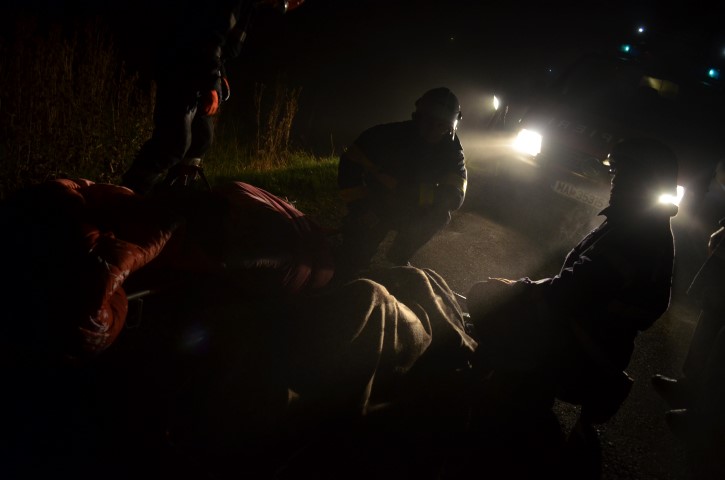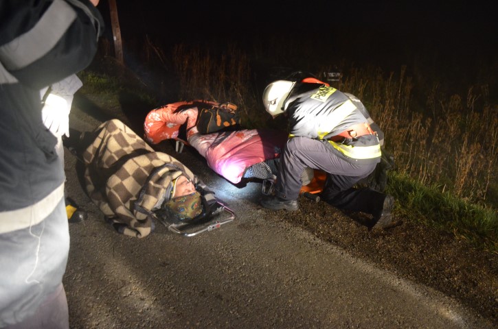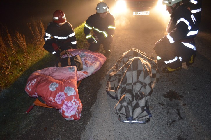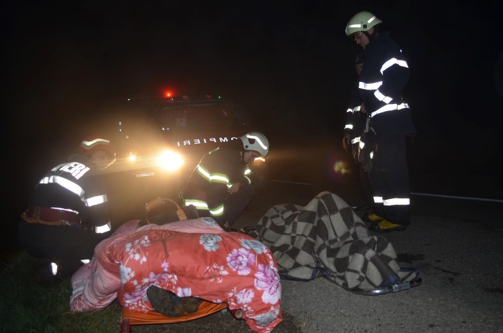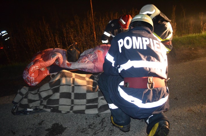 Autoturismul s-a răsturnat la câțiva metri de șosea. În ea se aflau patru persoane, din Brașov se pare. Două dintre ele, soț și soție au ajuns la spital, fiind preluate de ambulanțe. Ceilalți pasageri se află întinși pe carosabil și așteaptă sosirea altor autosanitare.