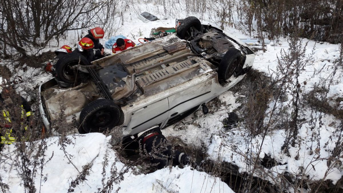 Luni, in jurul orei 6.00, in timp ce conducea autoturismul pe DJ 208B, din comuna Udesti, un barbat de 52 de ani, din judetul Botosani, nu a adaptat viteza la conditiile de drum, carosabilul fiind acoperit cu zapada, a patruns pe contrasens, dupa care, s-a rasturnat in afara partii carosabile.Din accident, a rezultat ranirea a trei pasageri din autoturism cu varste cuprinse intre 43 si 63 de ani, toti din judetul Botosani. Victimele au fost transportate la spital pentru acordarea de ingrijiri medicale.