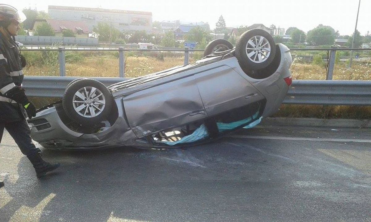 Evenimentul rutier s-a petrecut miercuri după-amiază după ce mașina în care se afla un tânăr, băut fiind, s-a rostogolit de mai multe ori pe șosea.