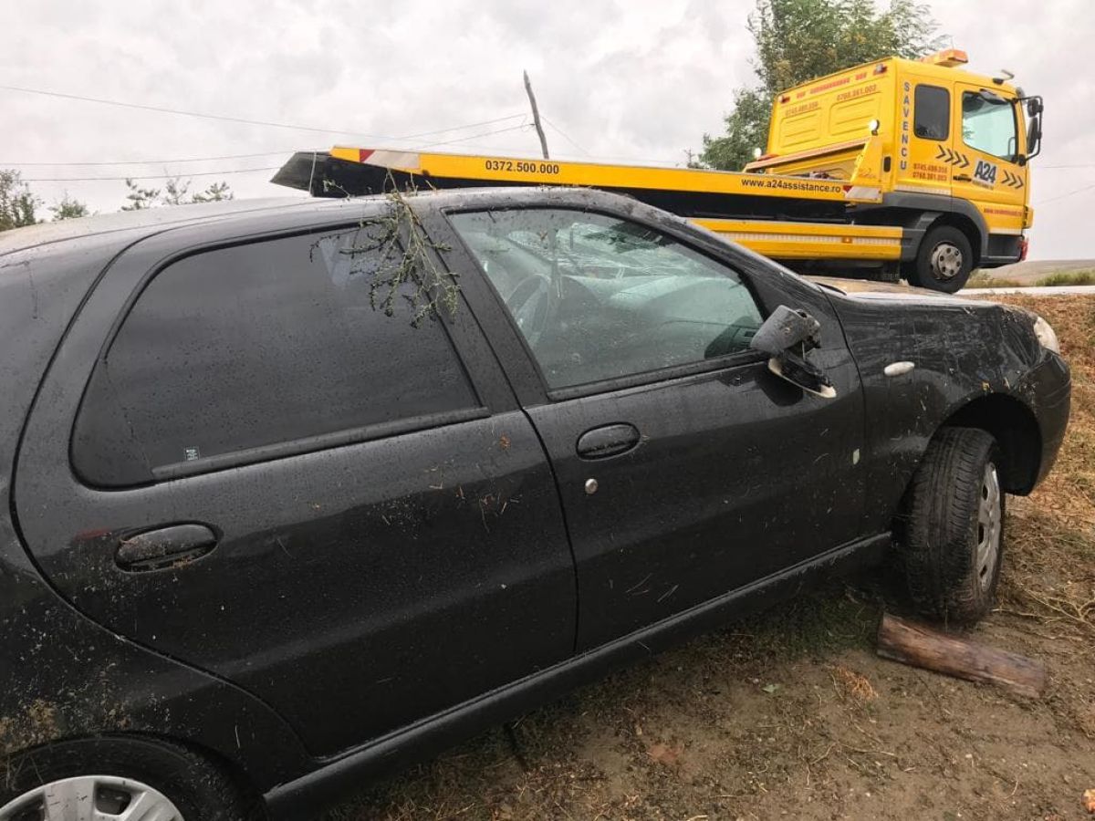 Din fericire, conducătorul auto care se afla la volan nu a fost rănit și a reușit să iasă singur din autoturism.