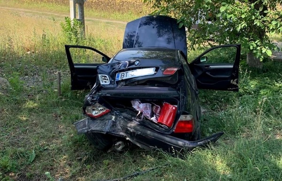 În BMW se aflau două persoane, taă și fiu, ambii fiind răniți în urma izbiturii.