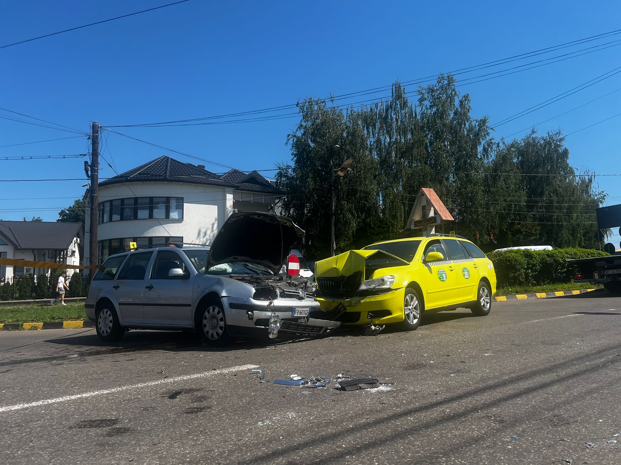 La volan se afla femeia de 72 de ani care nu a acordat prioritate autoturismului care circula în regim de taxi.