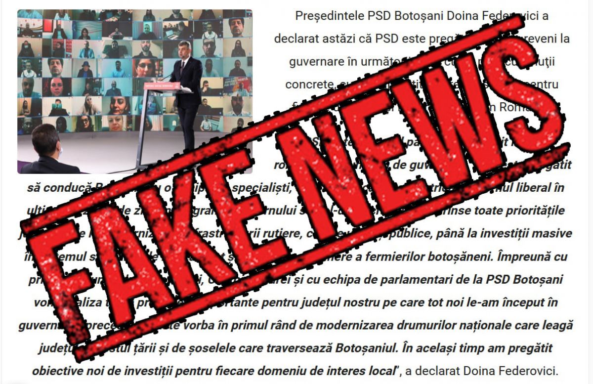 ”Culmea demagogiei populiste este atinsă în comunicatul mult iubitei și stimatei tovarășe din fruntea partidului roșu, care îi «asigură» pe botoșăneni că PSD are un nou program-minune, prin care rezolvă toate problemele țării și ale județului, începând cu covidul. Pesediștii își imaginează astfel că vor găsi suficienți fraieri pe care să-i prostească cu vorbele lor goale, la fel cum au făcut în urmă cu patru ani, când au promis, ba chiar, ca și acum, au «dat asigurări» privind construcția de spitale regionale, autostrăzi, locuințe noi, creșe, grădinițe și școli, nefăcând apoi absolut nimic din toate astea”,