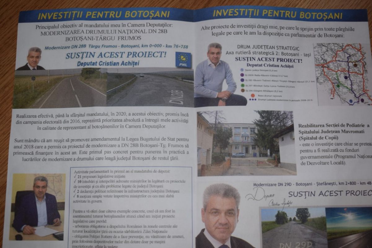 Un pliant în care sunt prezentate realizările uni parlamentar PNL i-a enervat pe social democrații botoșăneni.