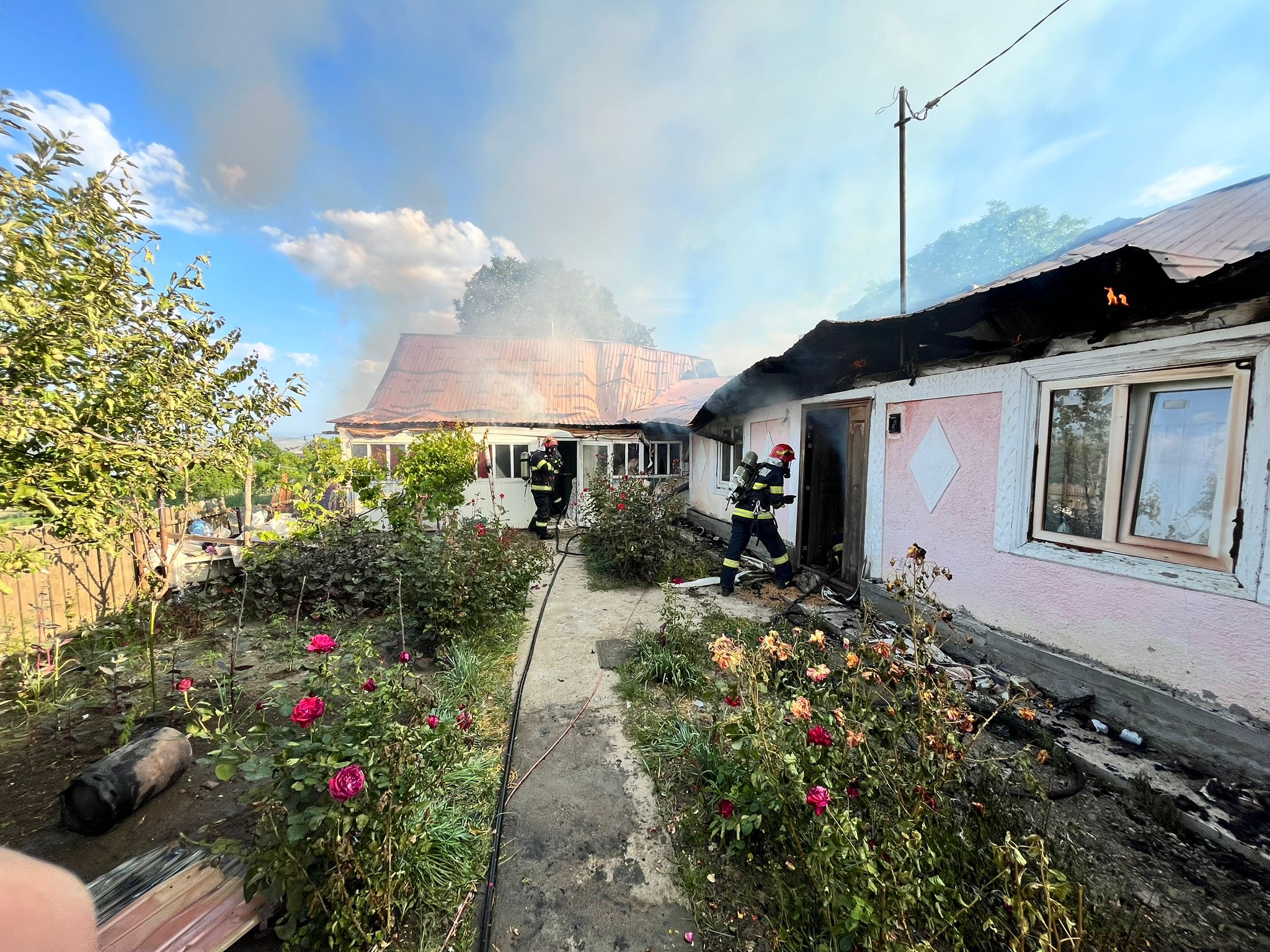 Aceștia au constatat faptul că ardeau violent acoperișul casei, dar și bunurile din bucătărie.
