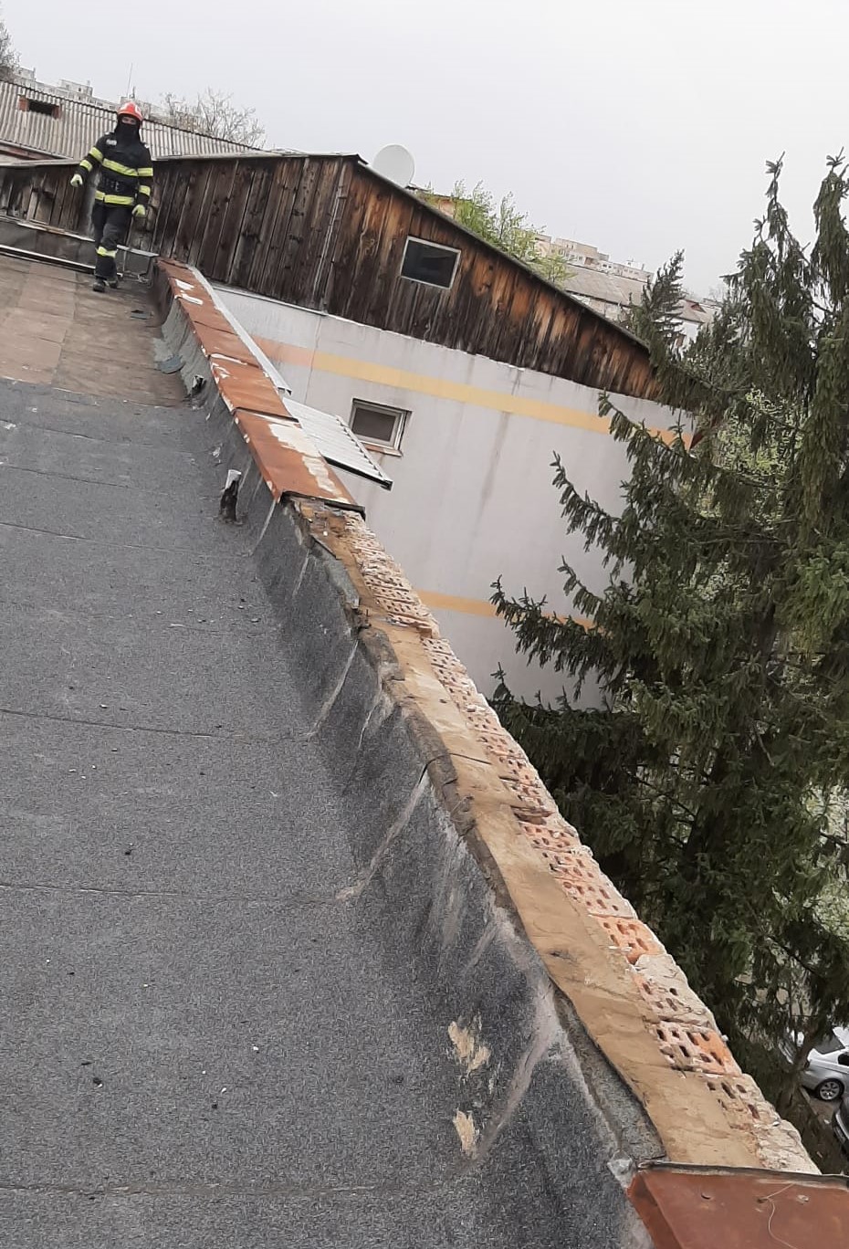 Aceștia au acționat pentru degajarea unor bucăți de tablă de pe acoperișurile unor blocuri și a unei case de pe străzile Vârnav, Aleea Nouă, Primăverii, Gheorghe Filipescu și 1 Decembrie, desprinse de vânt și care puteau să cadă peste trecători.