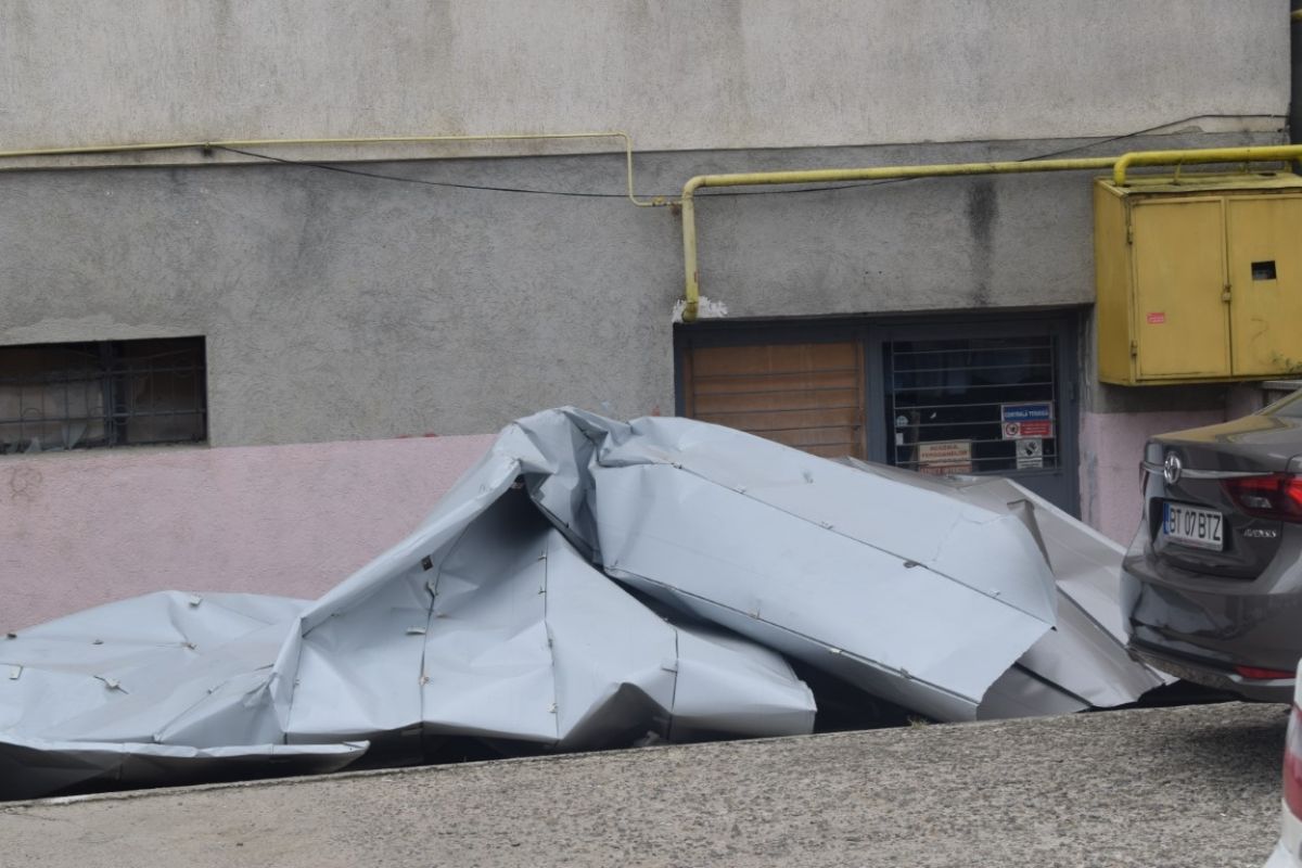 După două luni abia s-a obosit cineva să ajungă în parcarea din spatele fostei Direcție a Muncii pentru a ridica bucățile imense de tablă. O parte din acoperiș a fost aruncată într-o grădiniță a blocului din apropiere și se afla în continuare în fața unui balcon. Alta, mai mare, a stat în tot acest timp, lângă sediul instituției.