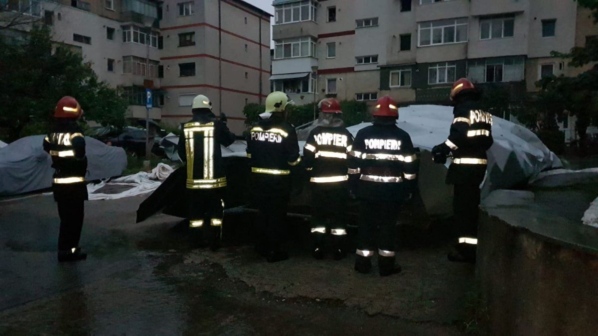 Pompierii se află în aceste momente în zonă pentru a degaja bucata imensă de tablă.