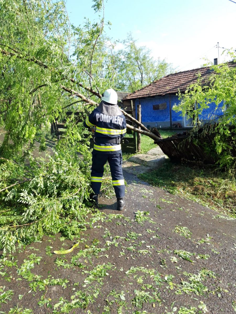 Totodată, trei copaci au fost doborâți de vânt și au căzut pe cabluri tv și pe partea carosabilă.