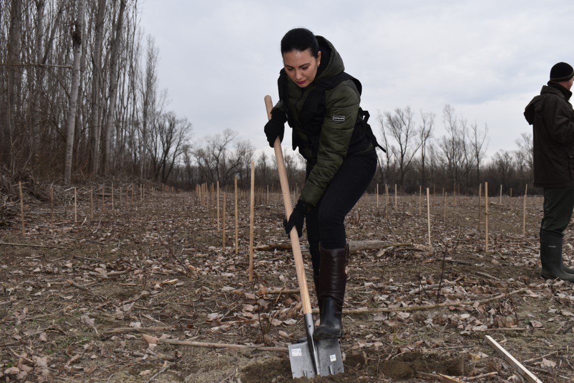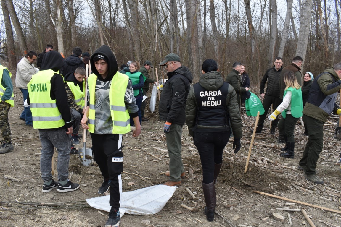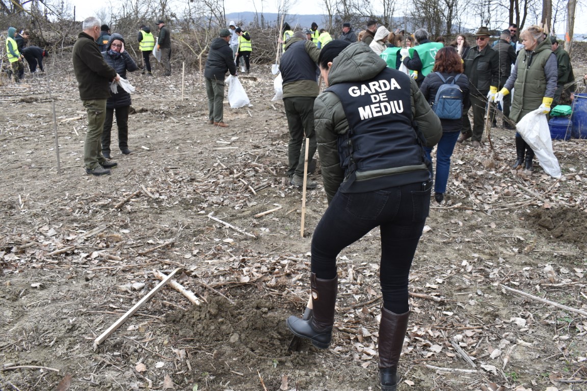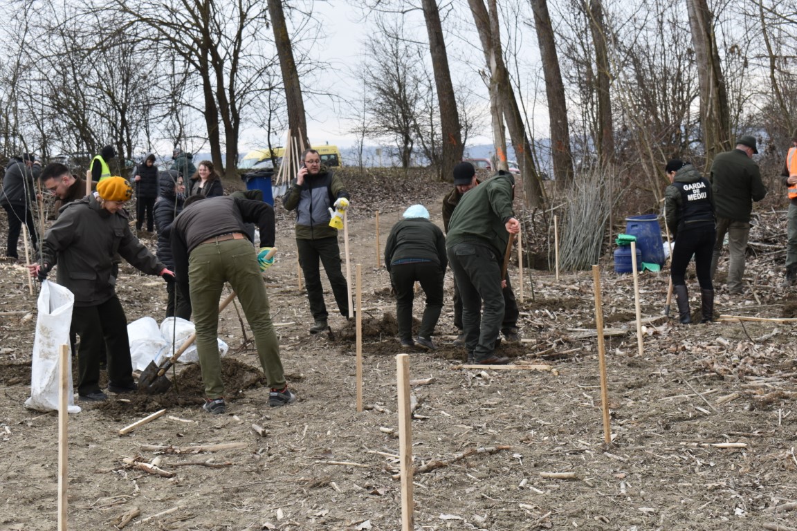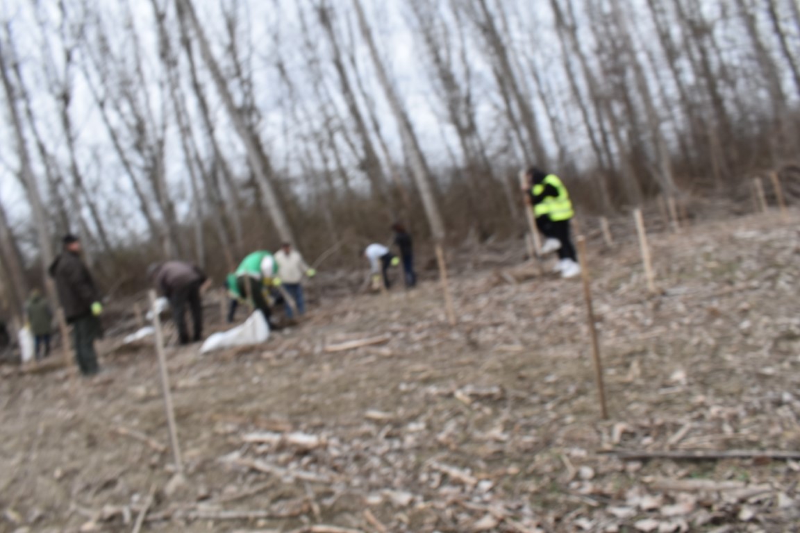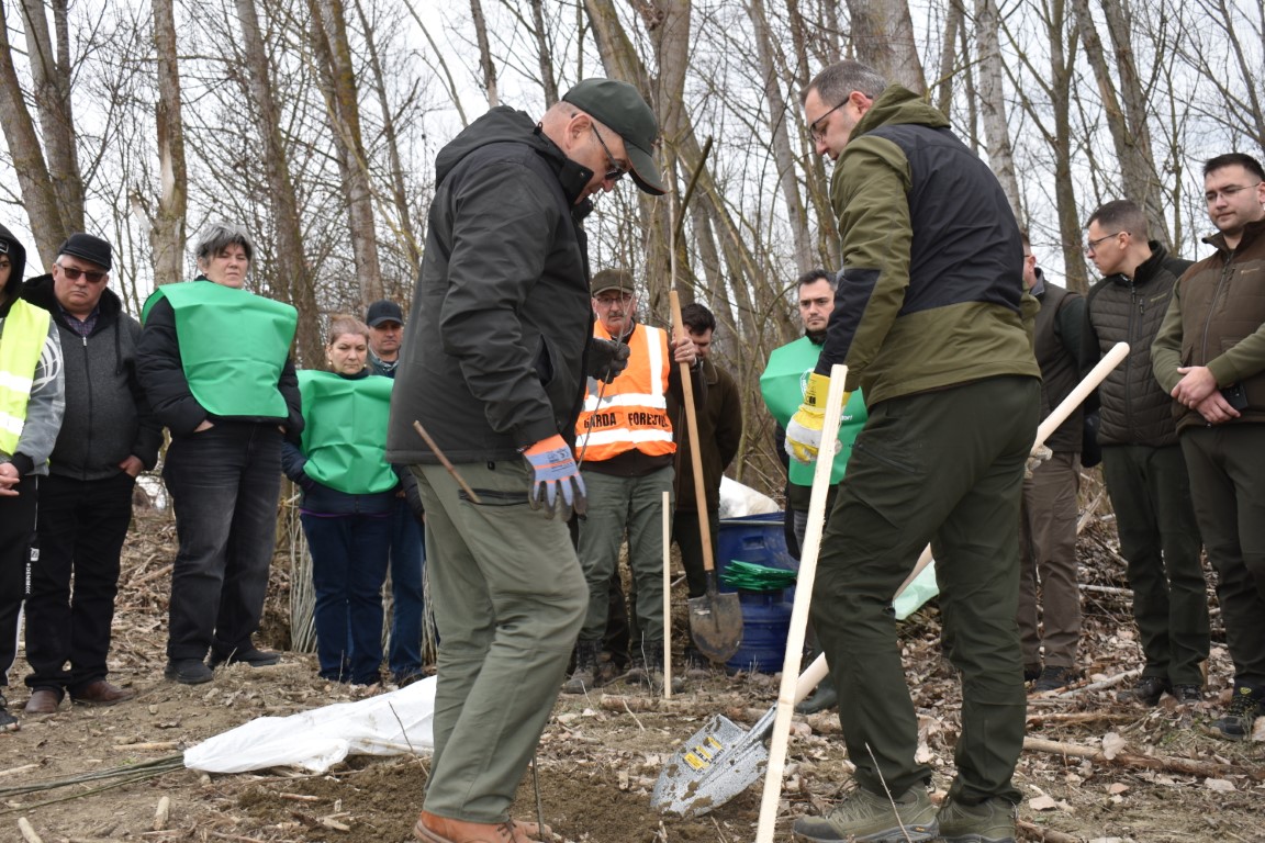 Prima acțiune programată a fost aceea de replantare a unei suprafețe de 2,5 hectare cu puieți de plop alb. Practic aceeași specie care a fost exploatată anul trecut după 25 de ani de vegetație, durata maximă până la tăierile efectuate de silvicultori.