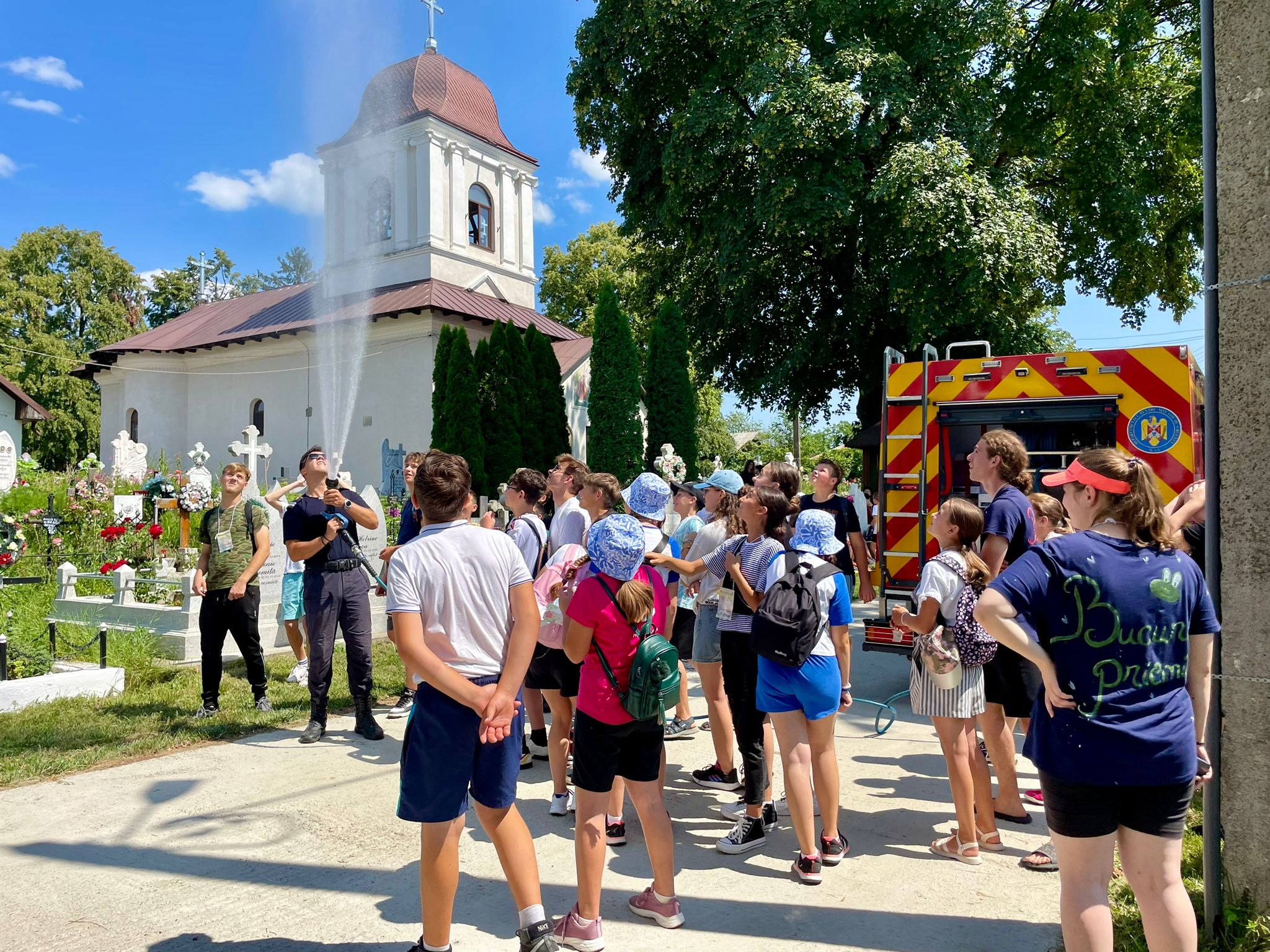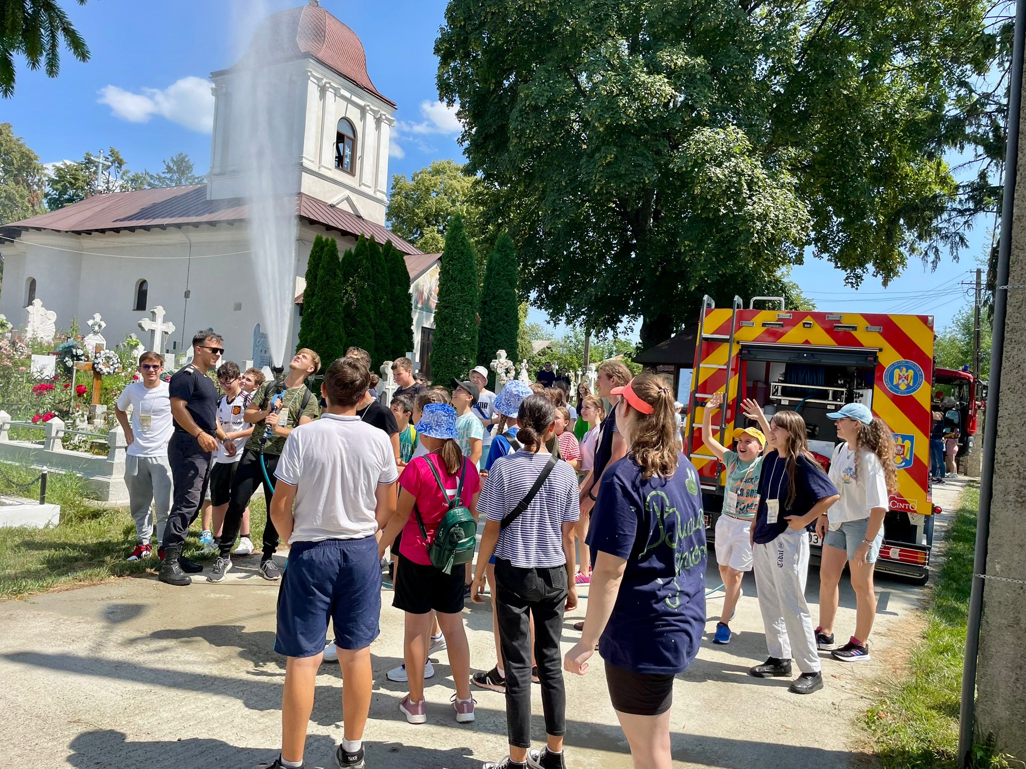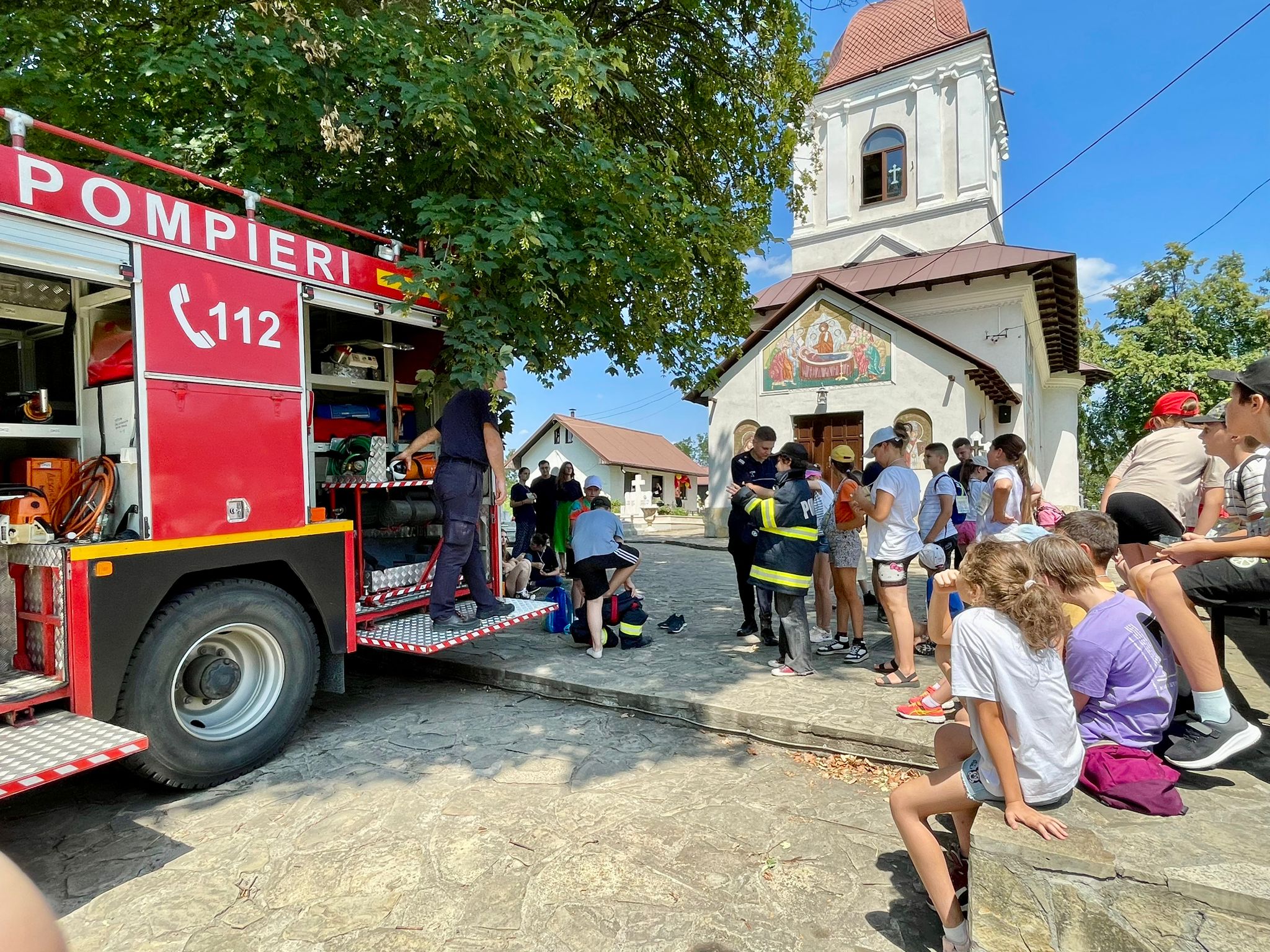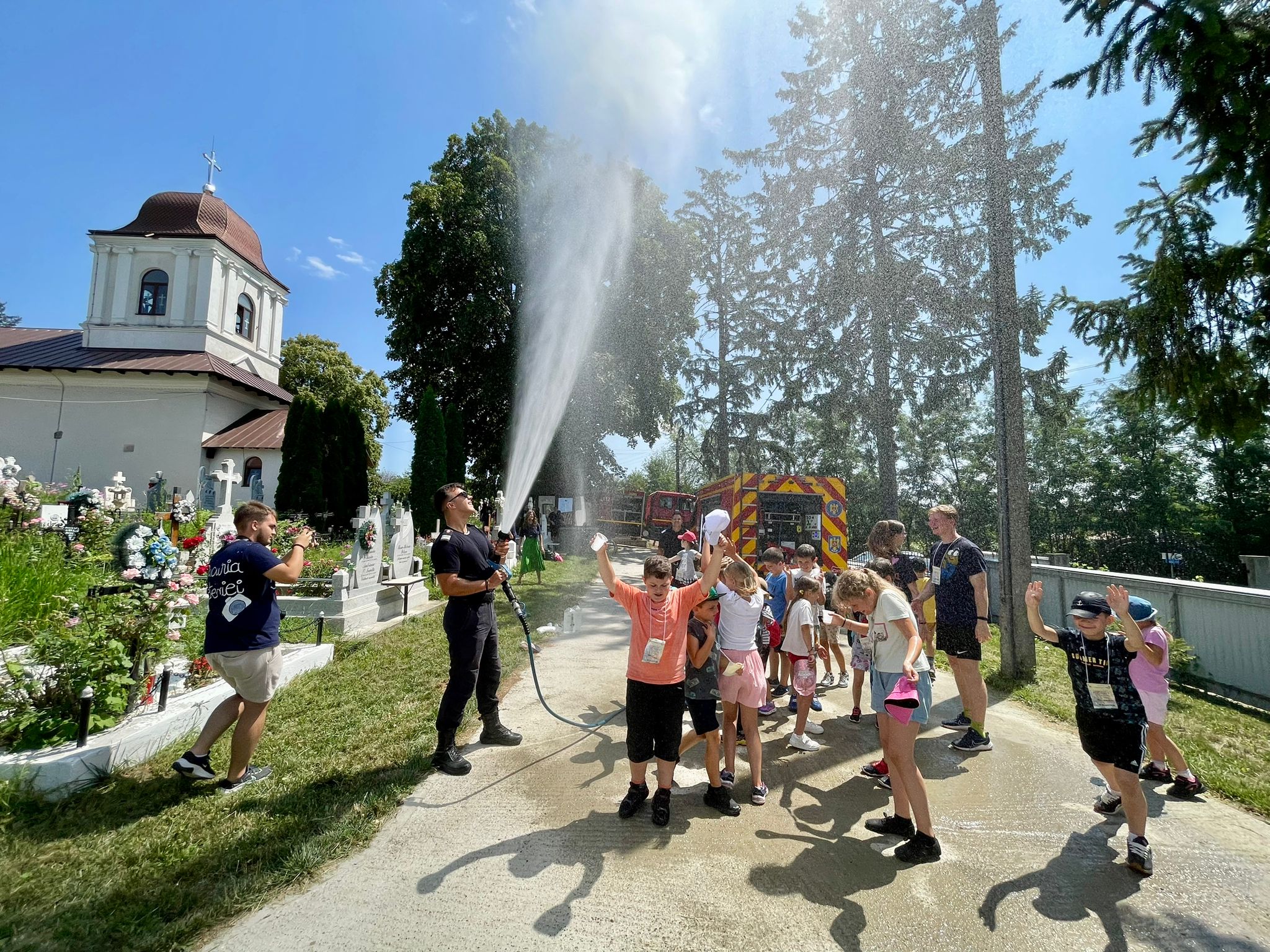 Peste 100 de copii și voluntari au petrecut ziua alături de pompieri la biserica “Adormirea Maicii Domnului” din Vorona Mare, în cadrul taberei de zi „Bucuria Prieteniei”.