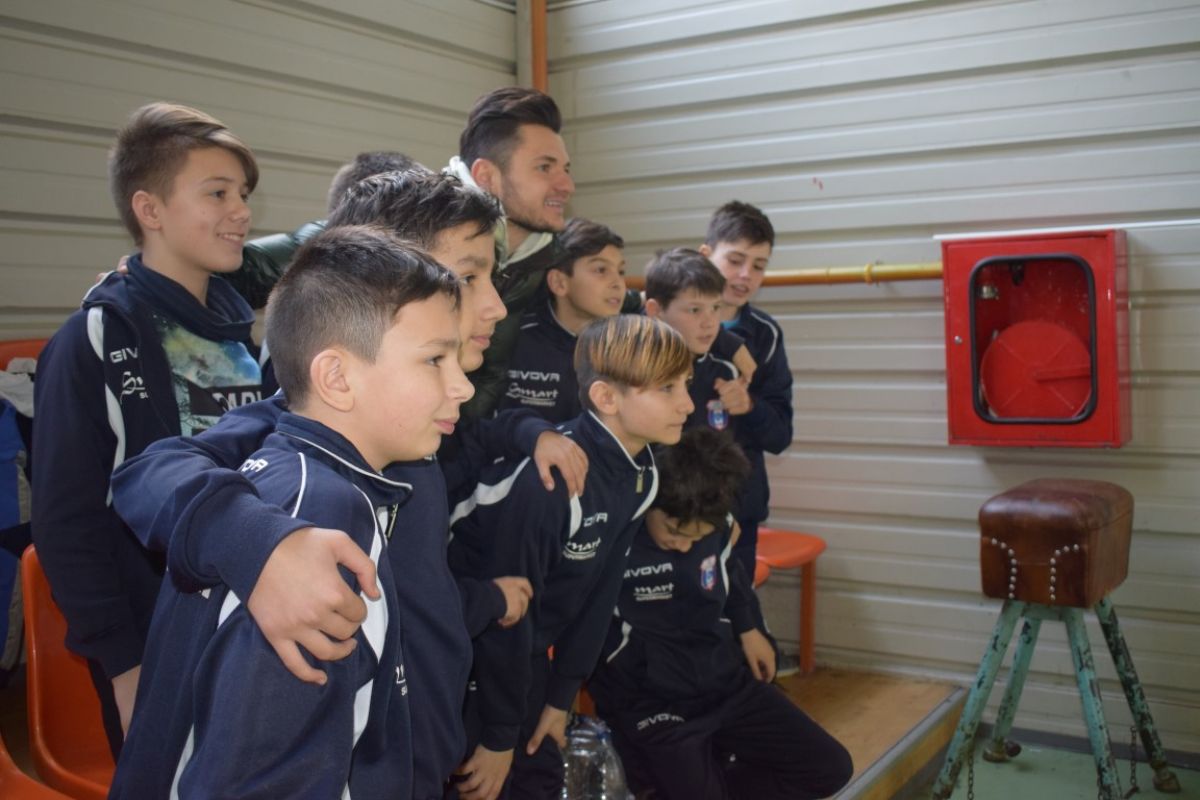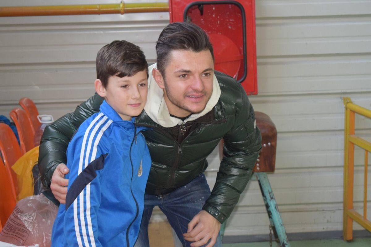 Simpla apariție a portarului de la FC Botoșani în sala de sport a Colegiului Tehnic Gheorghe Asachi a fost suficientă pentru a atrage atenția micilor fotbaliști care se aflau acolo.