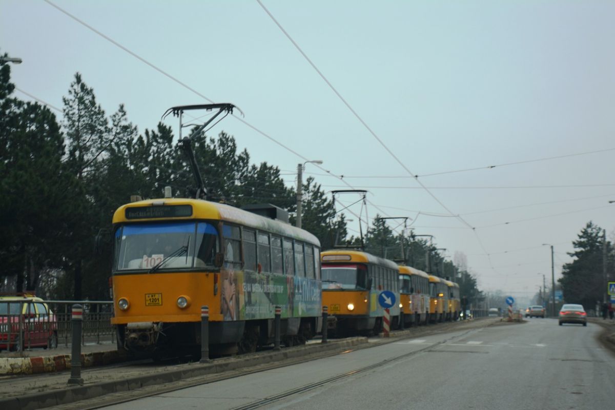 Acolo, în aceste momente sunt blocate nici mai mult, nici mai puțin de nouă tramvaie, atât de pe linia 101, cât și de pe 102.