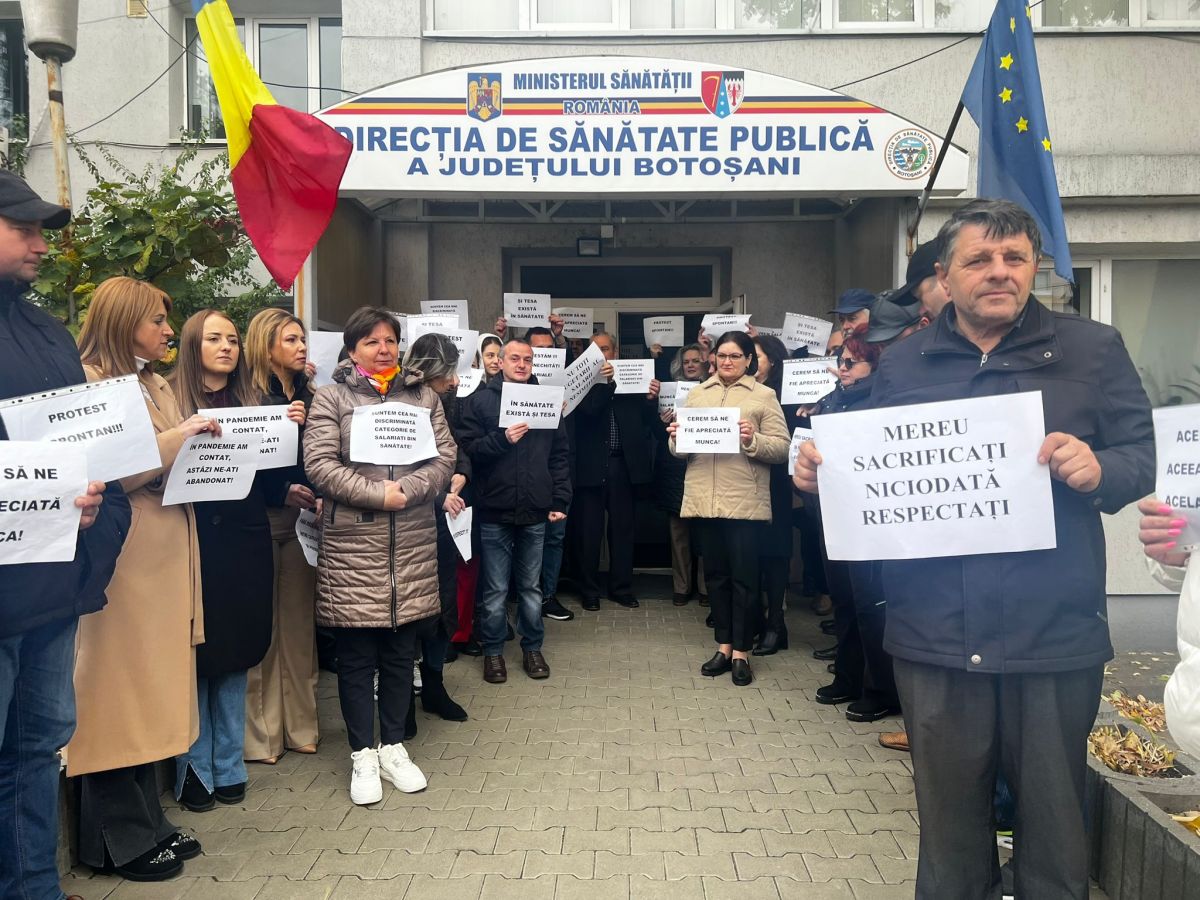 Zeci de salariați de la DSP Botoșani își exprimă nemulțumirile față de salariile mult prea mici. În zonă a ajuns și reprezentantul Guvernului în teritoriu Sorin Cornilă.