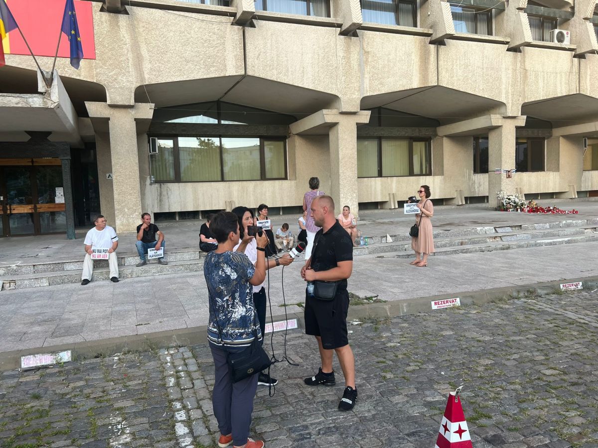 Aproximativ 20 de persoane se află în aceste momente pe esplanada Palatului Administrativ.