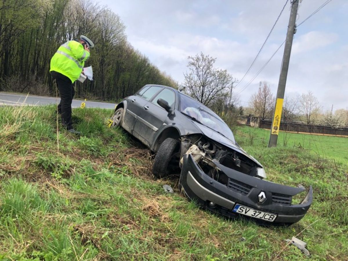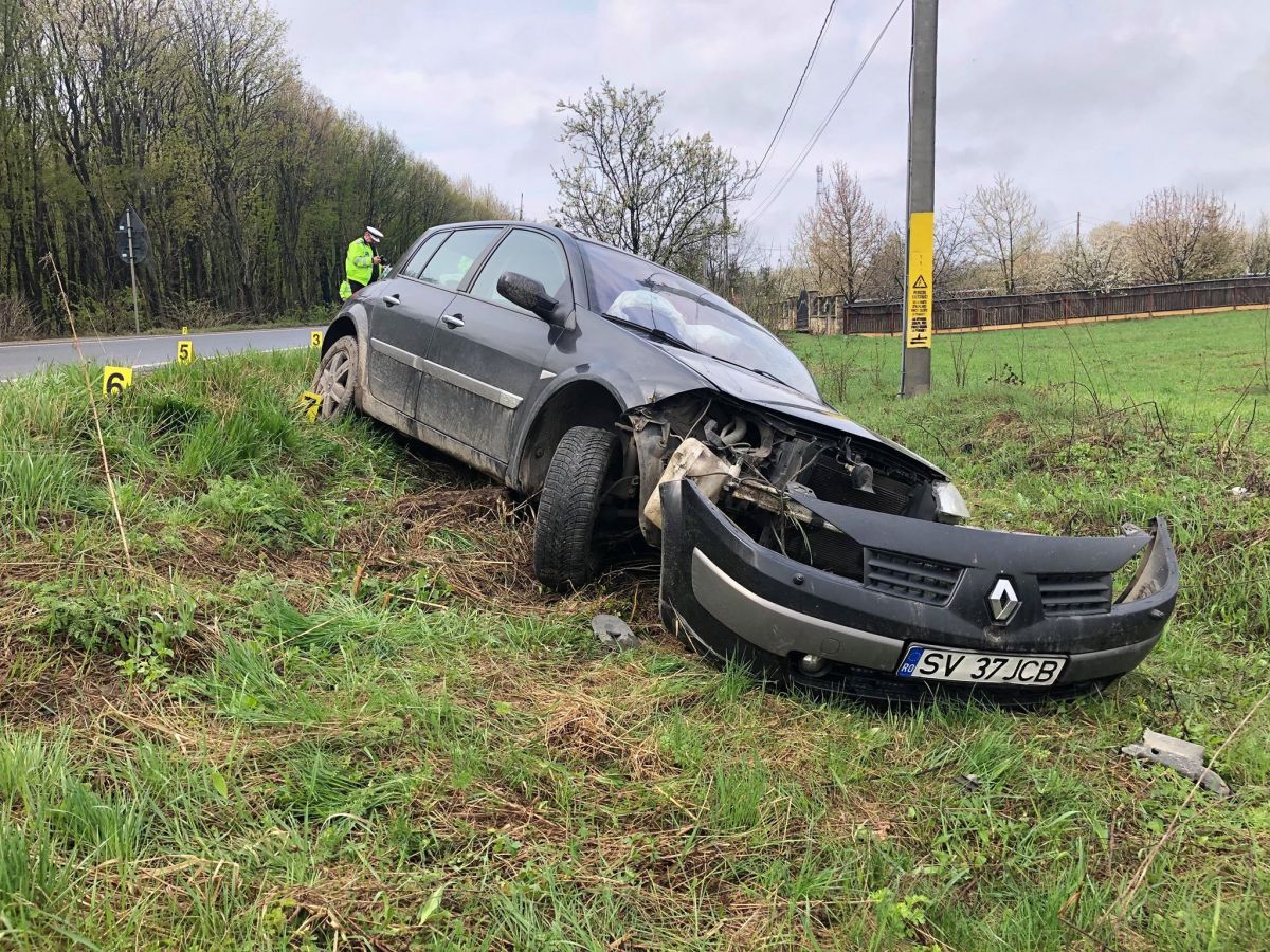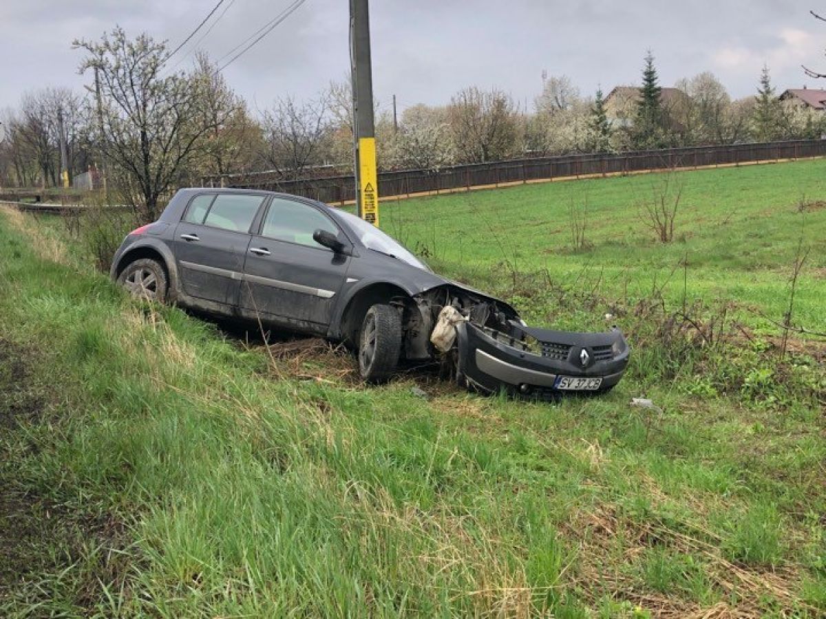Un Renault Megan cu numere de Suceava care circula înspre Botoșani a pierdut controlul asupra volanului și a intrat în șanțul din partea stângă.