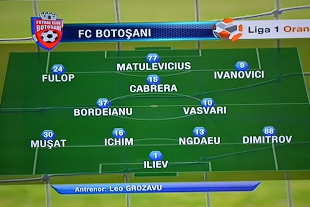 Aşadar, moldovenii au început cu următorul 11: Iliev – Dimitrov, Ngadeu, Ichim, Muşat – Bordeianu, Vaşvari, Cabrera – Ivanovici, Matulevicius, Fulop.