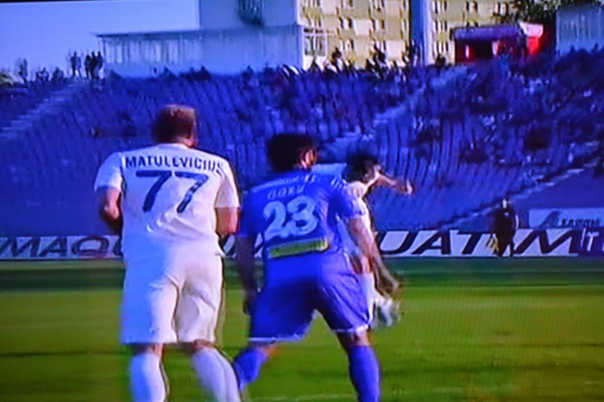 Min 33: Fulop preia la aproximativ 25 de metri de poartă şi trimite o torpilă fără nici o şansă pentru Smaranda