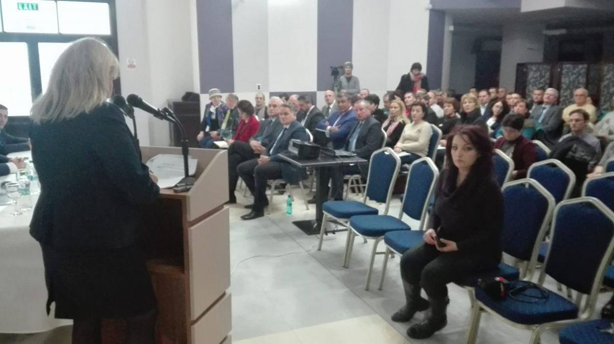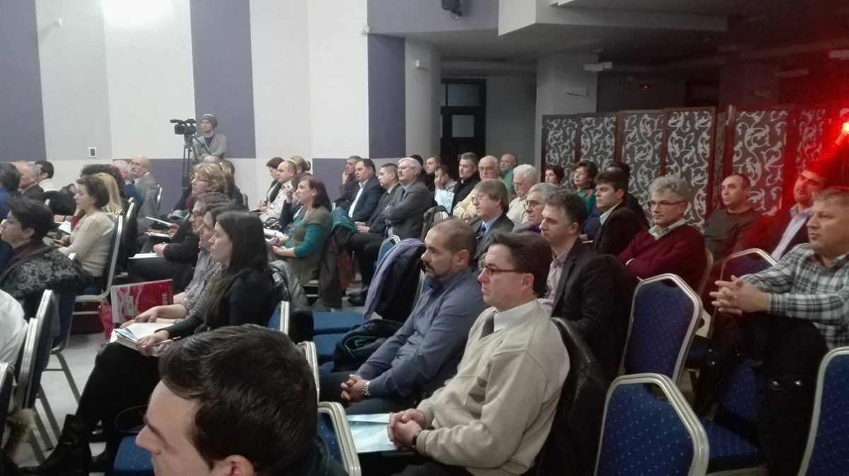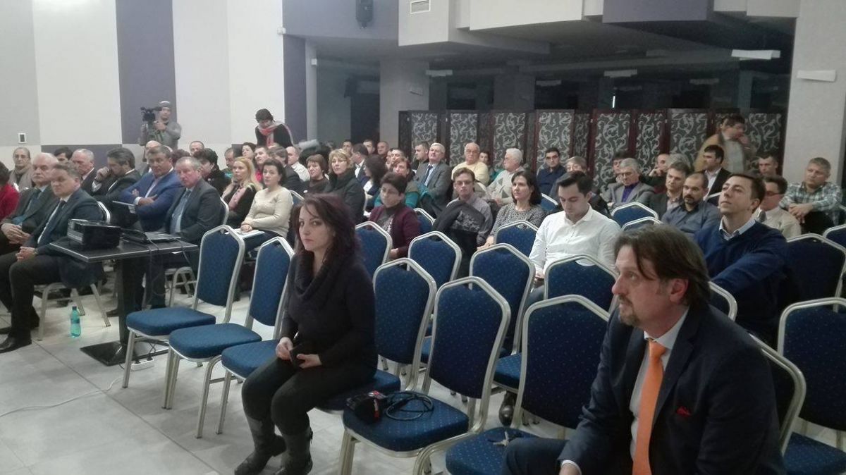 În sală se află fostul primar Florin Egner, fostul președinte al Consiliului Județean, Gheorghe Sorescu dar și oameni de afaceri, cel mai reprezentativ fiind Tonino Boldea. Acțiunea este organizată de Fondul Național de Credite pentru Întreprinderi Mici și Mijlocii.