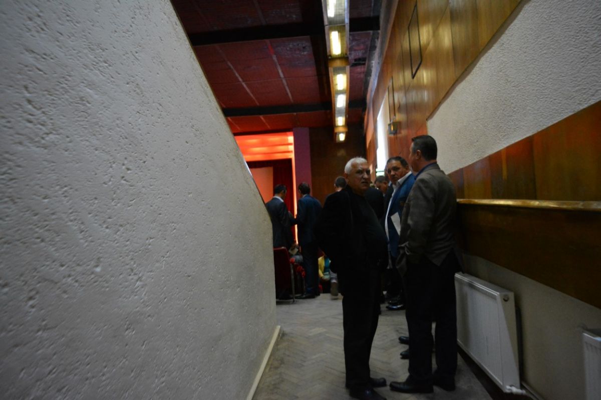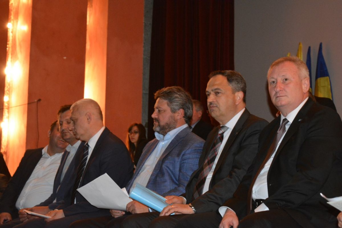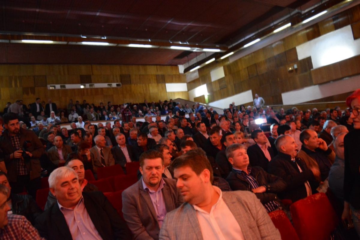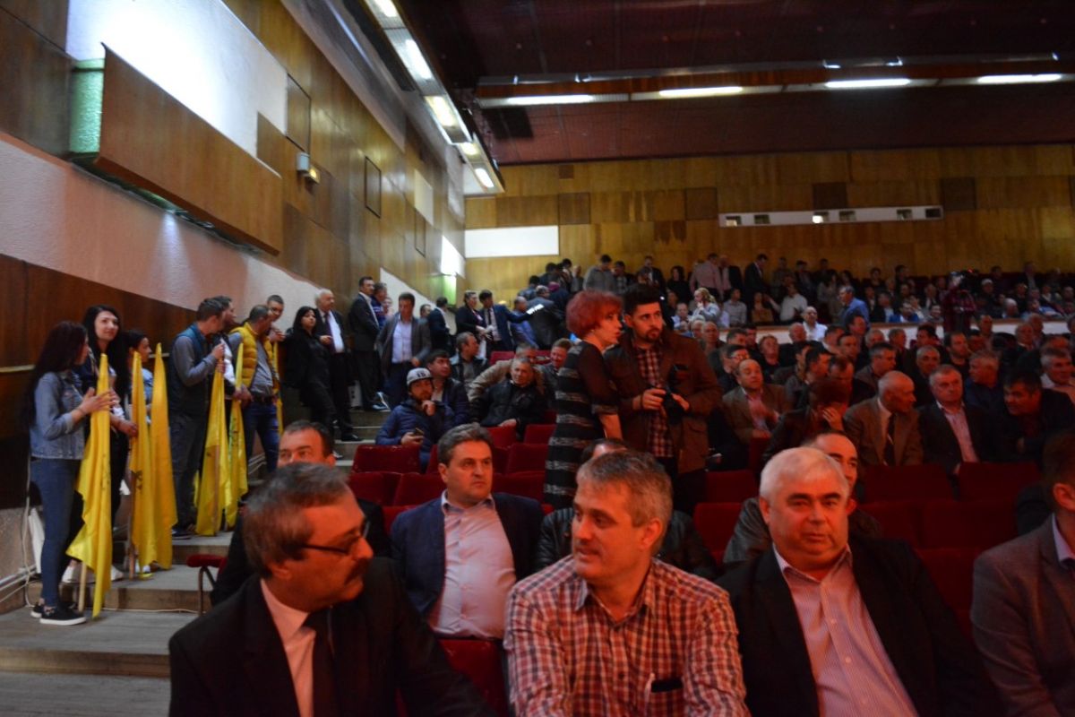 Cei peste 50 de candidaţi s-au aşezat pe scenă şi inclusiv acolo se văd clar cele două tabere, a celor doi pretendenţi la funcţia de preşedinte, Costel Şoptică şi Cristian Achiţei.