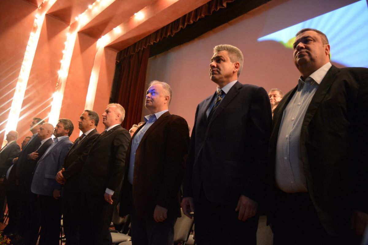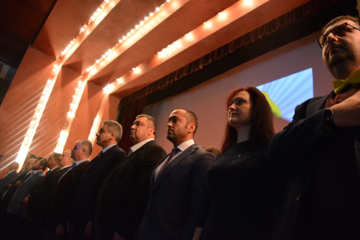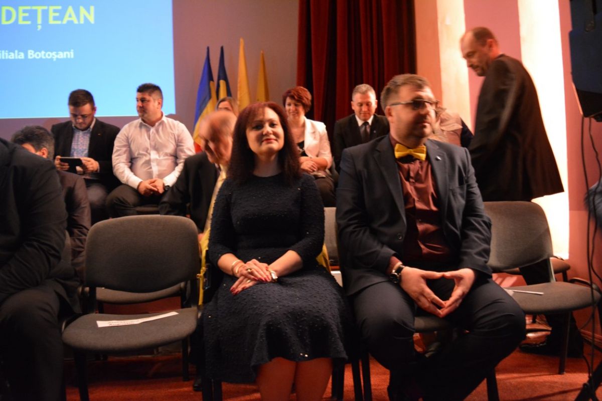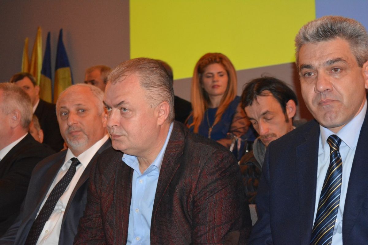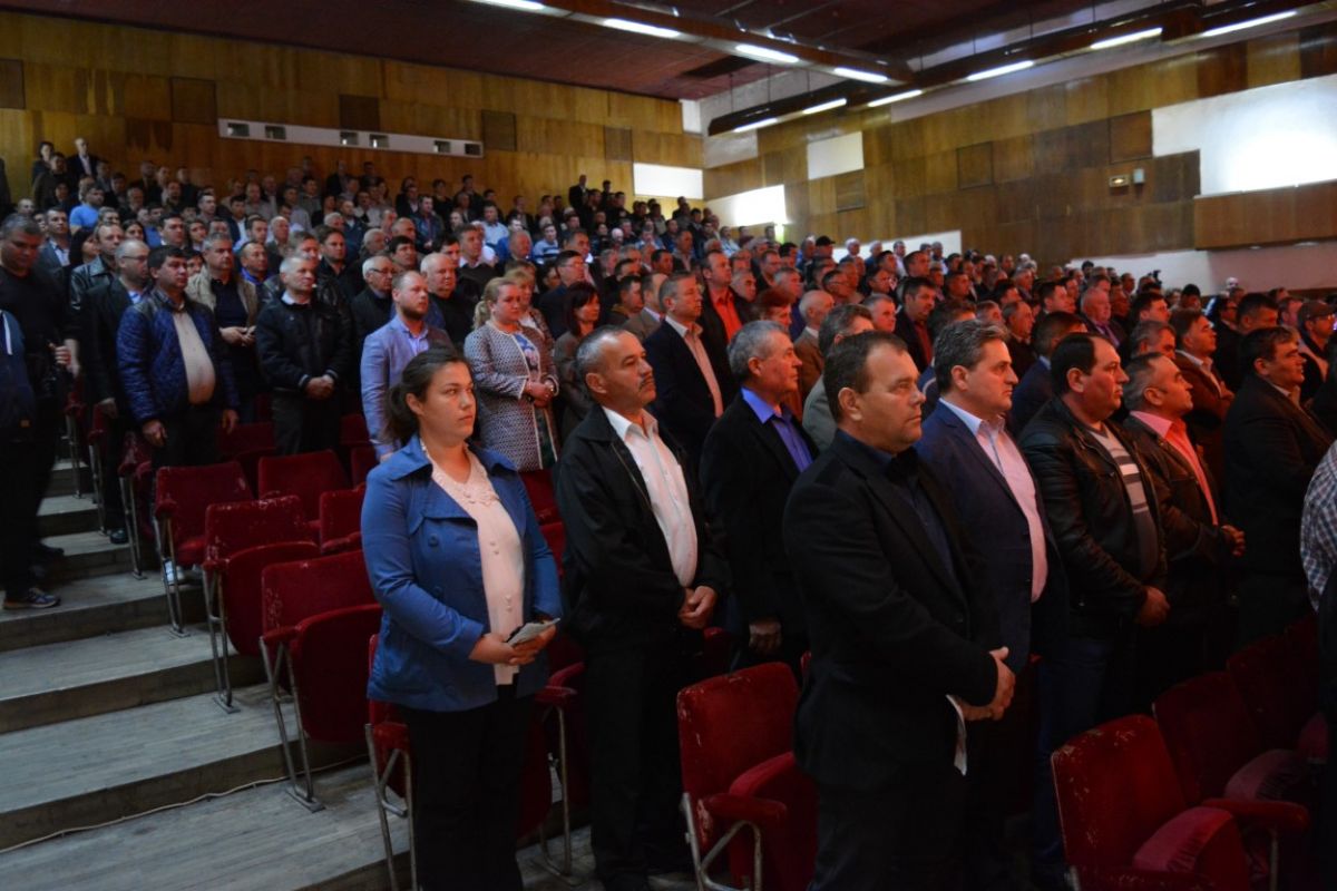 Cei peste 50 de candidaţi s-au aşezat pe scenă şi inclusiv acolo se văd clar cele două tabere, a celor doi pretendenţi la funcţia de preşedinte, Costel Şoptică şi Cristian Achiţei.