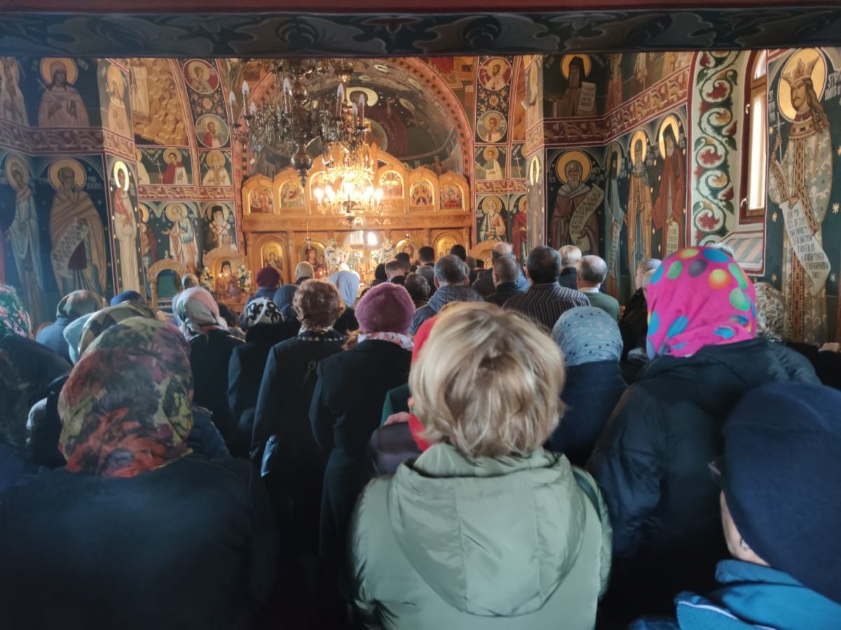 În aceste momente, Biserica este plină și zeci de credincioși ascultă slujba de afară.