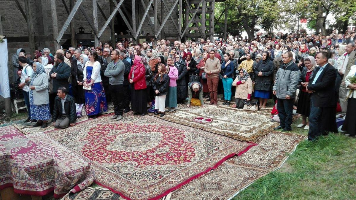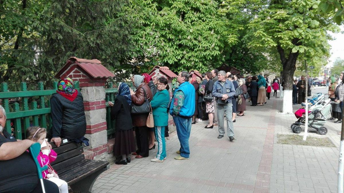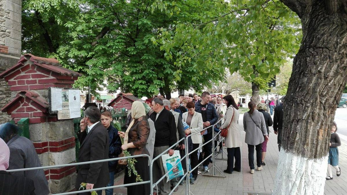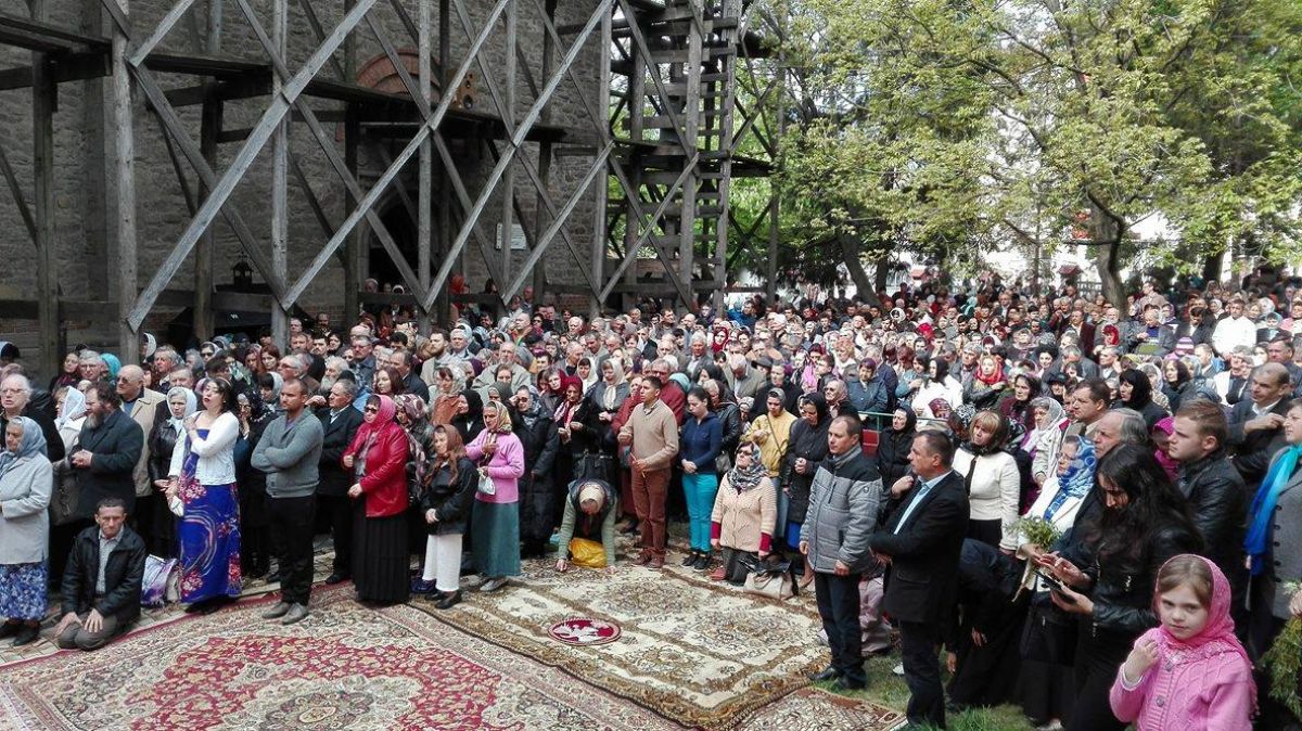 Oamenii stau în picioare și în genunchi, iar afluența este atât de mare încât unii urmăresc oficierea religioasă de pe trotuarele vecine lăcașului de cult. Botoșănenii au crenguțe de salcie în mâini, iar unele botoșănence au venit în costum popular. La oficiere participă și părintele protopop Lucian Leonte, pe podiumul montat în fața credincioșilor luând loc prefectul Dan Nechifor, președintele Consiliului Județean Botoșani, Gheorghe Sorescu și primarul Ovidiu Portariuc.