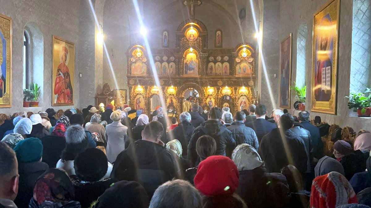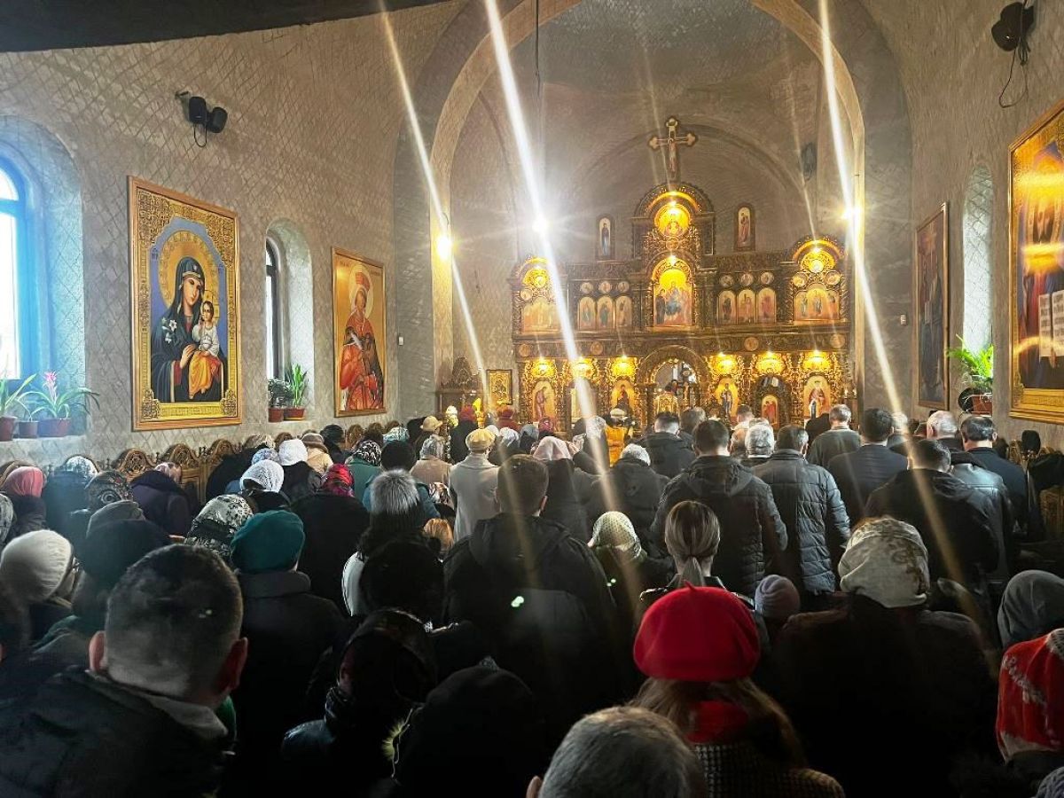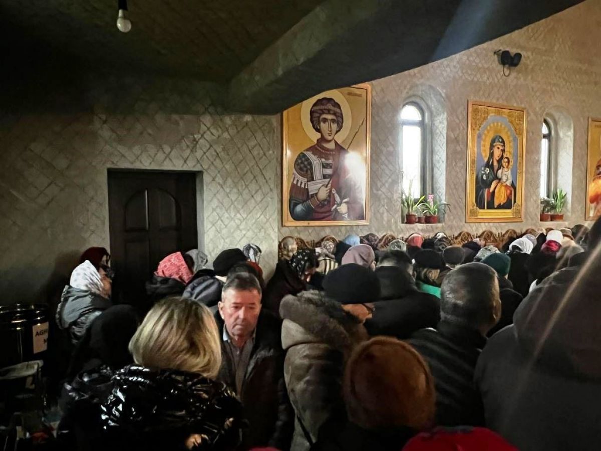 În lăcașul de cult enoriașii nu mai încap astfel încât s-au răsfirat afară, împrejurul acestuia.