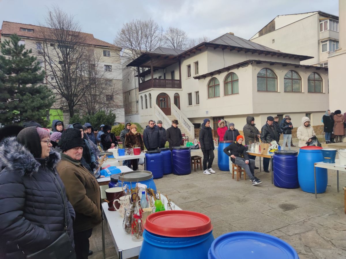 Botoșănenii și-au adus tot felul de recipiente pentru a lua Agheasma Mare.