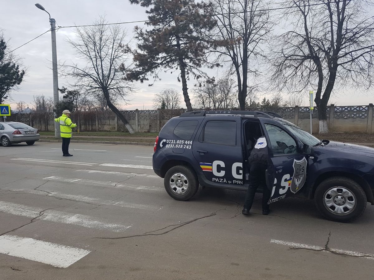 Un autoturism marca Dacia Duster, care aparține unei firme de pază și protecție, a luat în plin un pieton care se afla pe marcajul pietonal.