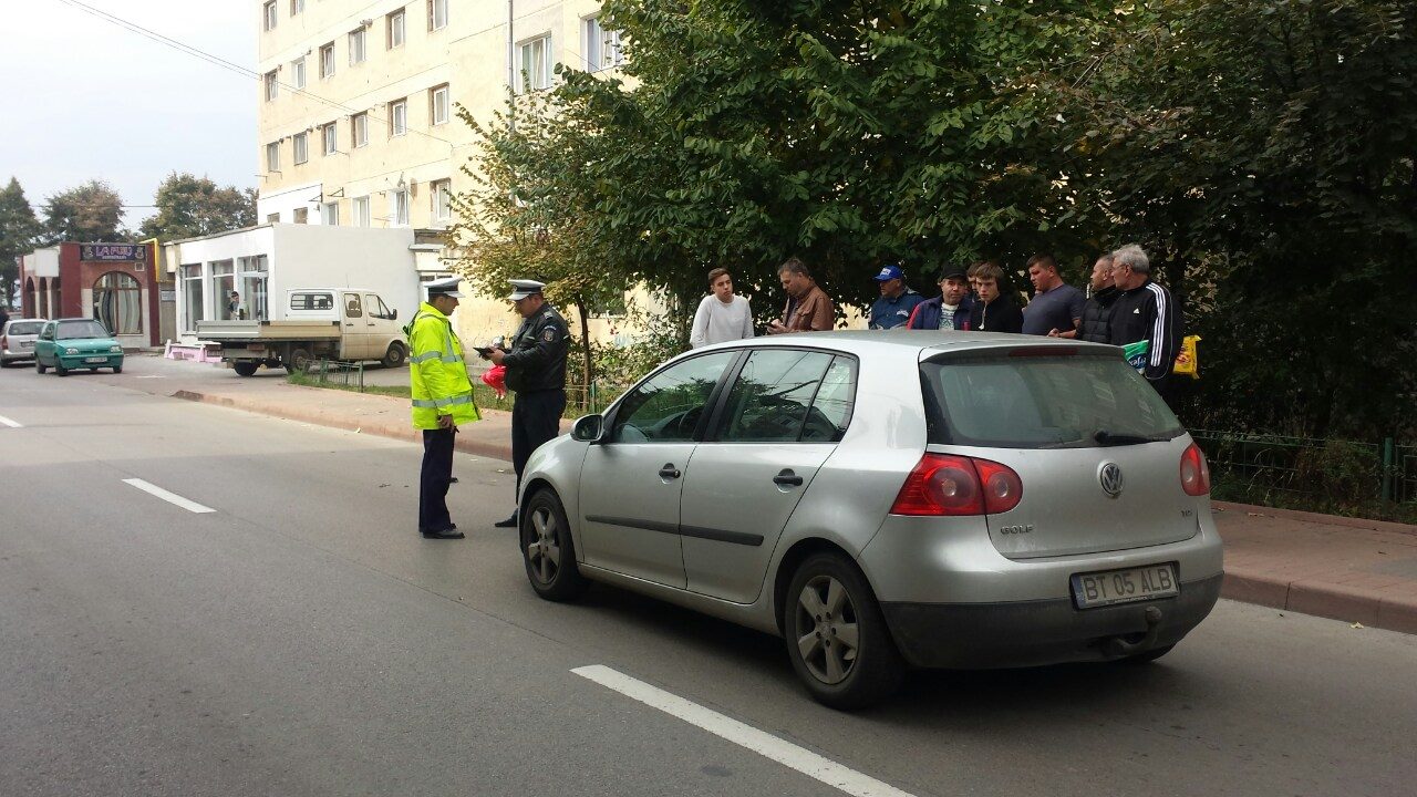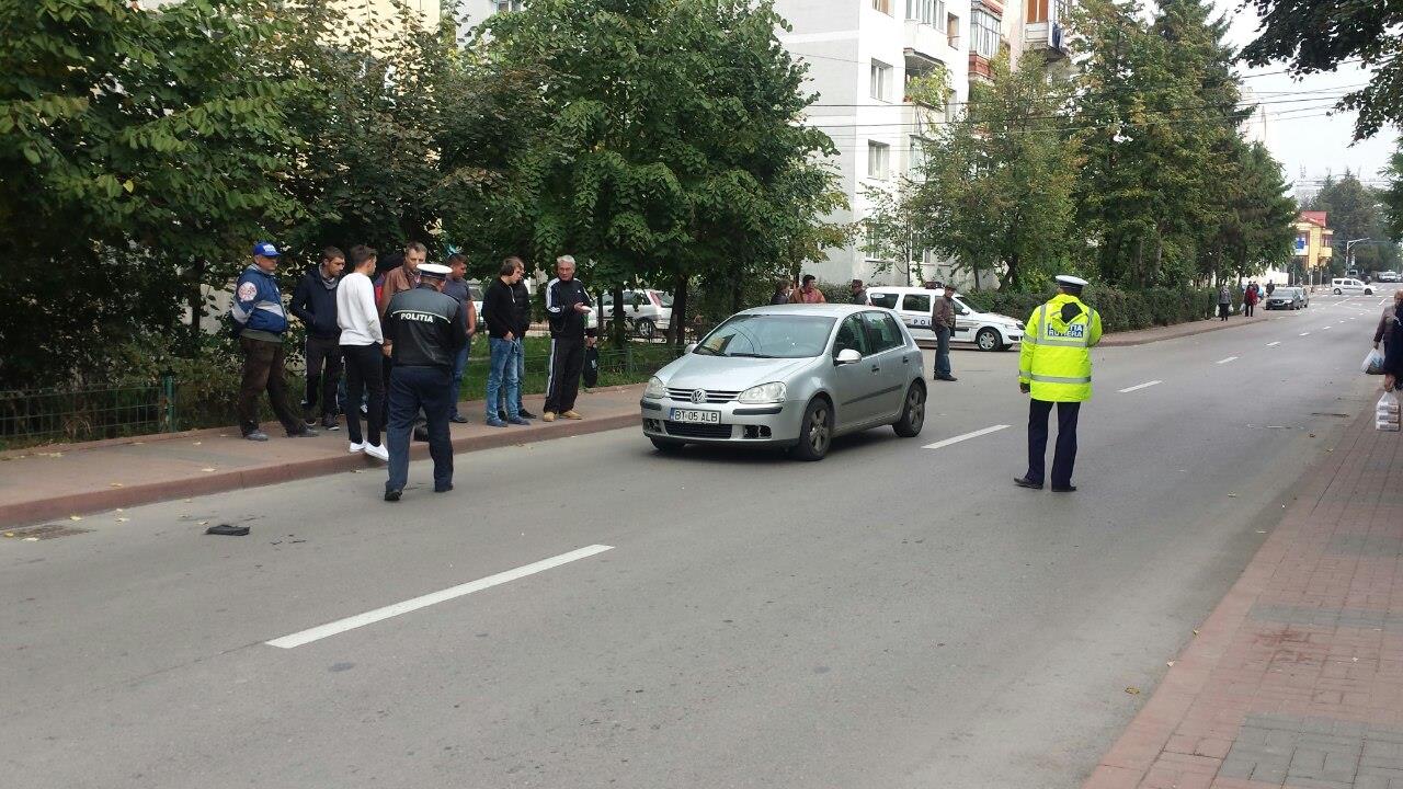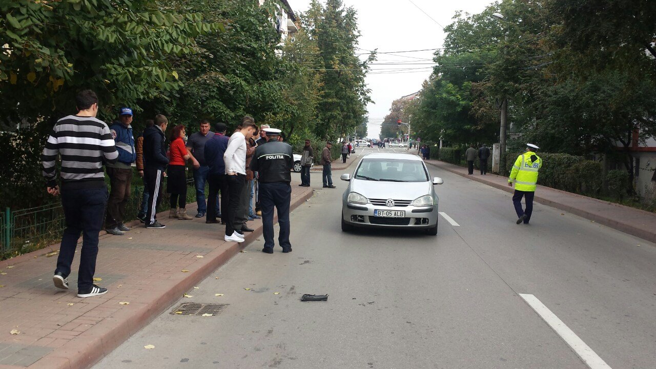 Un tânăr de 18 ani, care abia și-a luat permisul de conducere a lovit cu mașina un bărbat care se angajase în traversarea străzii prin loc nepermis. Autorismul marca VW Golf condus Ionuț P., circula dinspre strada Primăverii, spre Cimitirul Pacea. Cu câteva zeci de metri înainte de barul ”La Puiu”, i-a sărit în fața autoturismului Dumitru B., în vârstă de 75 de ani. Acesta a traversat strada fără a se asigura și a fost luat din plin de Golf. La fața locului a ajuns o autosanitară a Serviciului Județean de Ambulanță (SJA) care a preluat victima pentru a o transporta la Unitatea de Primiri Urgențe a Spitalului Județean Mavromati. Deocamdată nu se știe starea pietonului lovit, cert este faptul că bara din față a mașinii a fost desprinsă în urma loviturii.De asemenea, parbrizul din partea stângă a șoferului a fost spart în urma contactului cu trupul bărbatului. Din informații de la fața locului, bărbatul era lovit puternic la cap de unde îi curgea sânge.