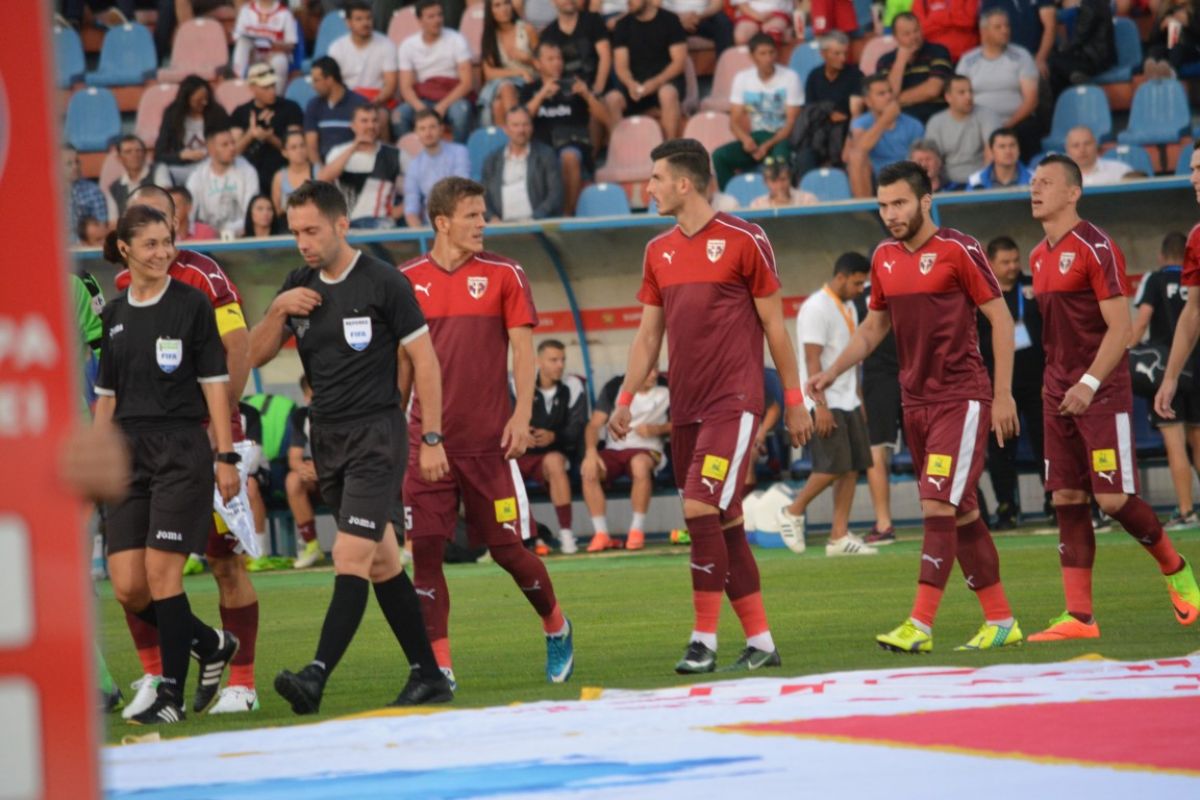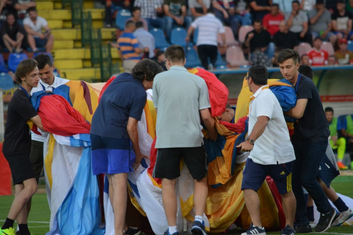 Înainte de fluierul de start s-a intonat „Deşteaptă-te, române”, momente în care toţi cei prezenţi în arenă s-au ridicat în picioare.