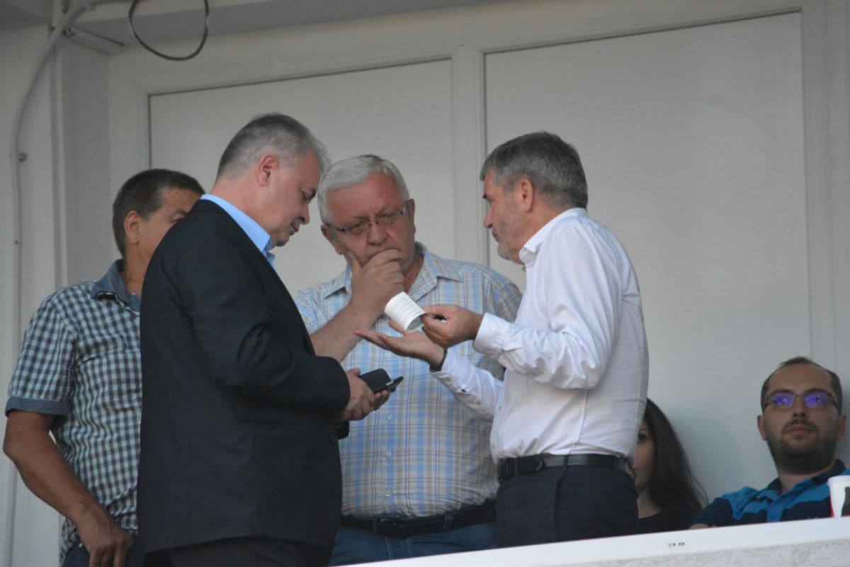 La tribuna VIP au luat loc Răzvan Burleanu, preşedintele Federaţiei Române de Fotbal, foşti mari fotbalişti ai României - Aurică Ţicleanu, Gheorghiţă Geolgău, Miodrag Belodedici, Jean Vlădoiu - antrenorul Mihai Stoichiţă.