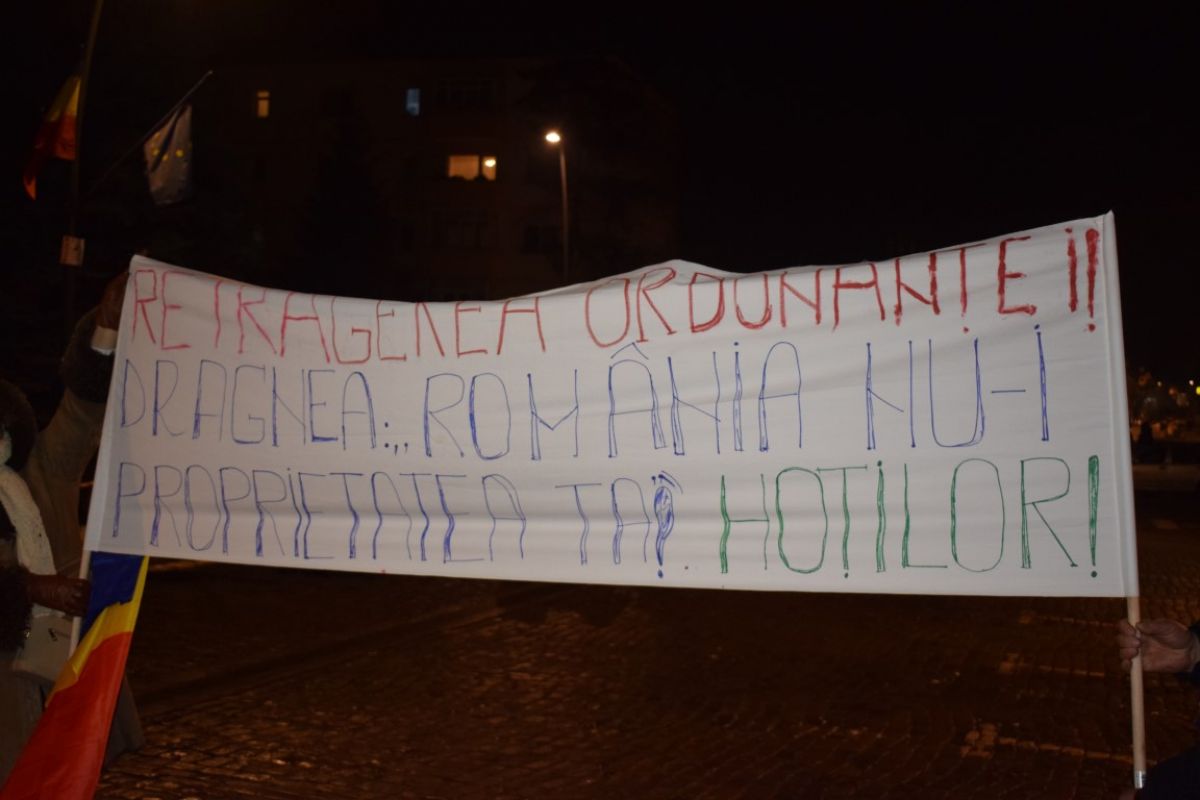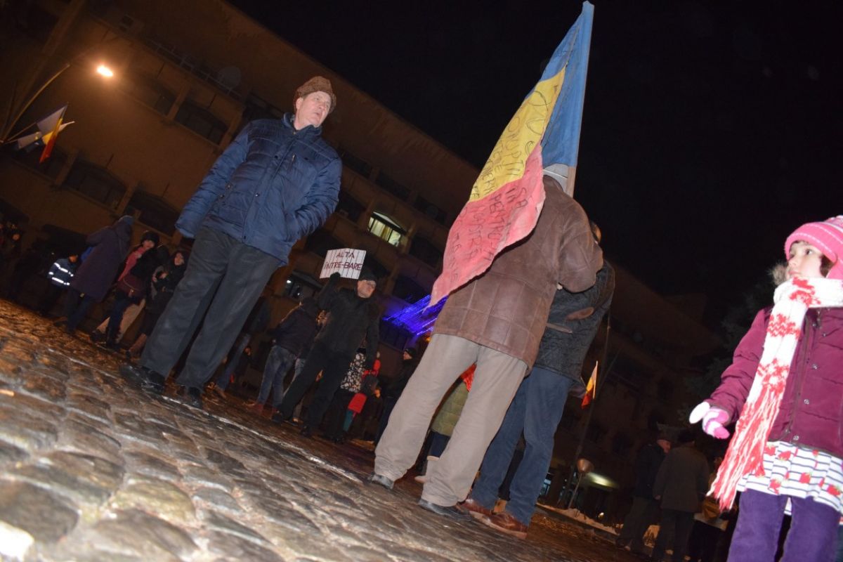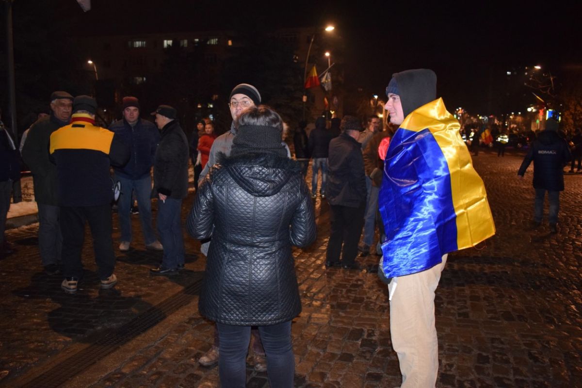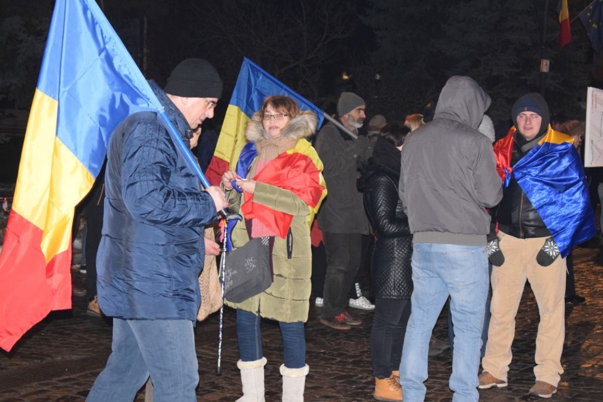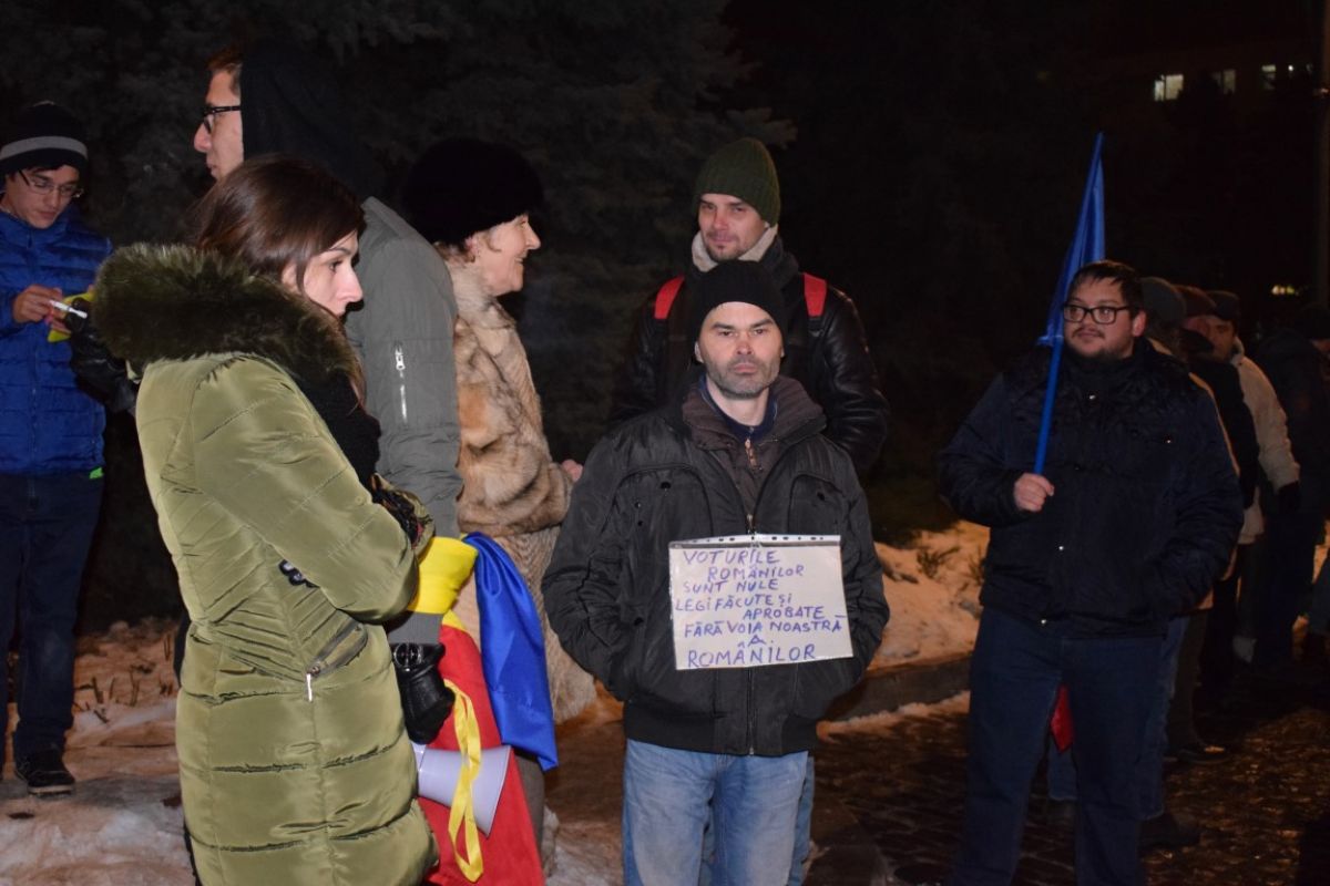 Ușor, ușor însă piața a început să se umple de oameni, parte care au fost și seara trecută, alții noi. Un domn a ieșit cu câinele de companie, altul decât în prima zi și cu un mesaj original care i-a amuzat pe ceilalți participanți : ”Sunteți așa de ticăloși că ați făcut și introvertiții să iasă în stradă”.