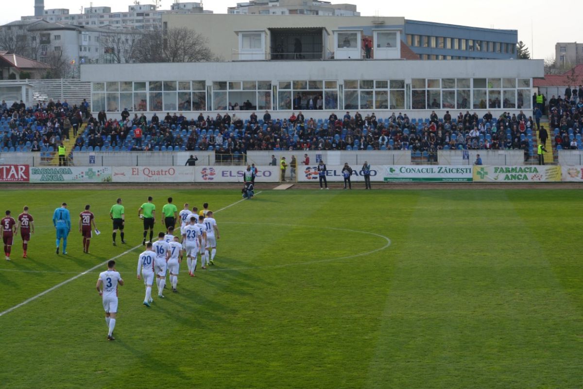 Pe Stadionul Municipal sunt prezenţi doar în jur de 1.000 de spectatori. De exemplu, la peluza dinspre bulevard au luat loc exact şapte spectatori.