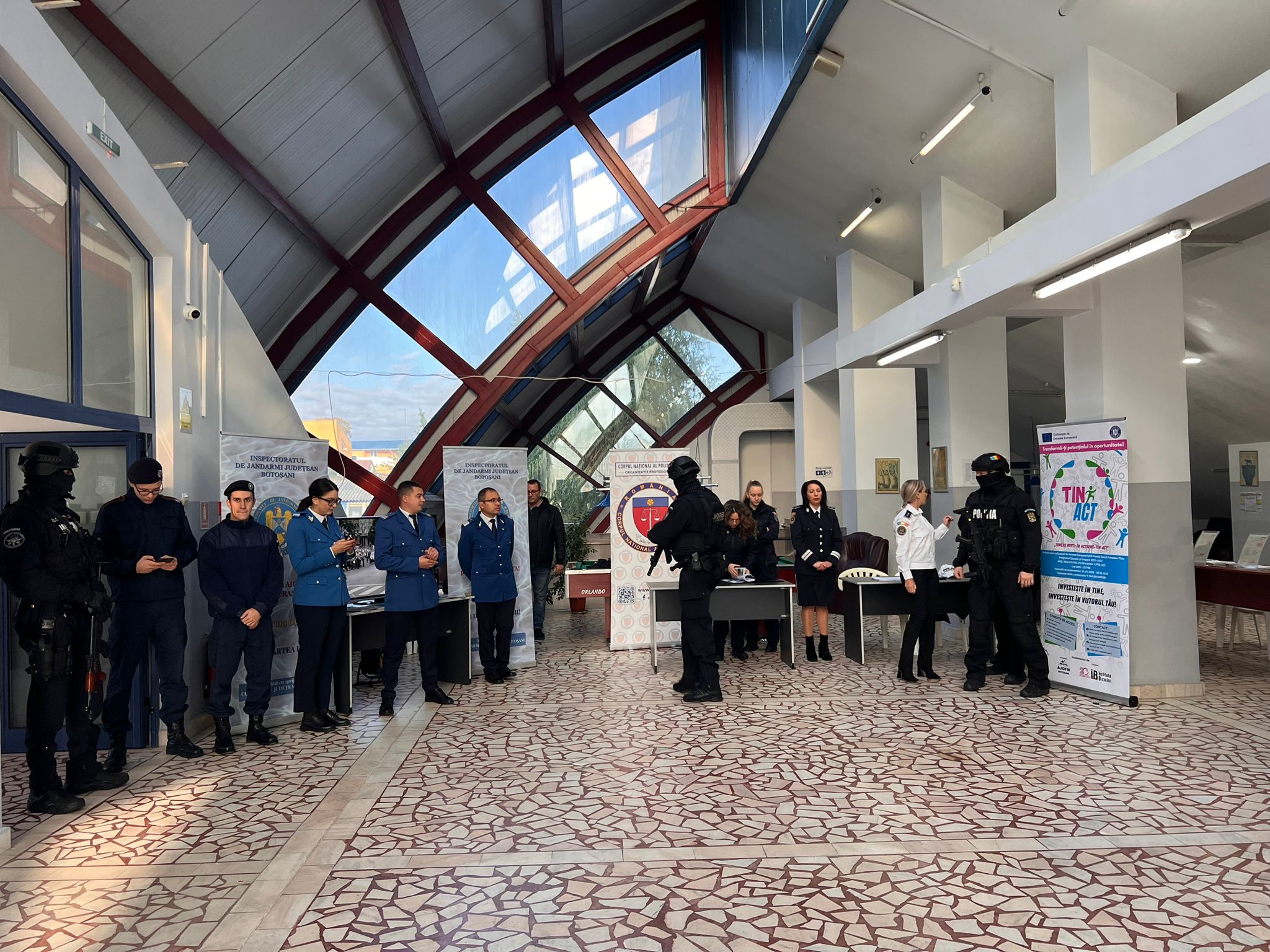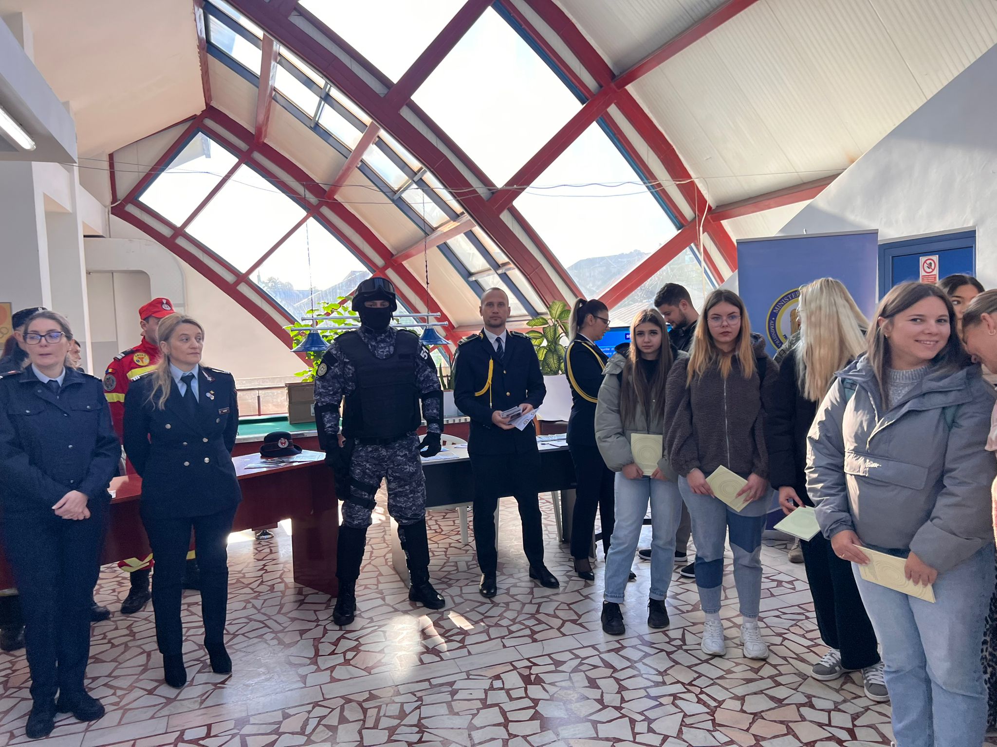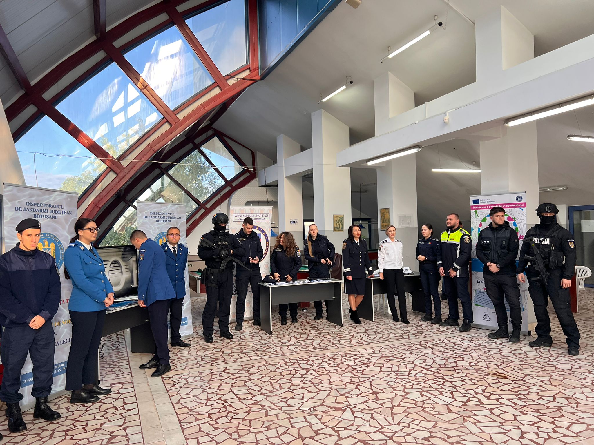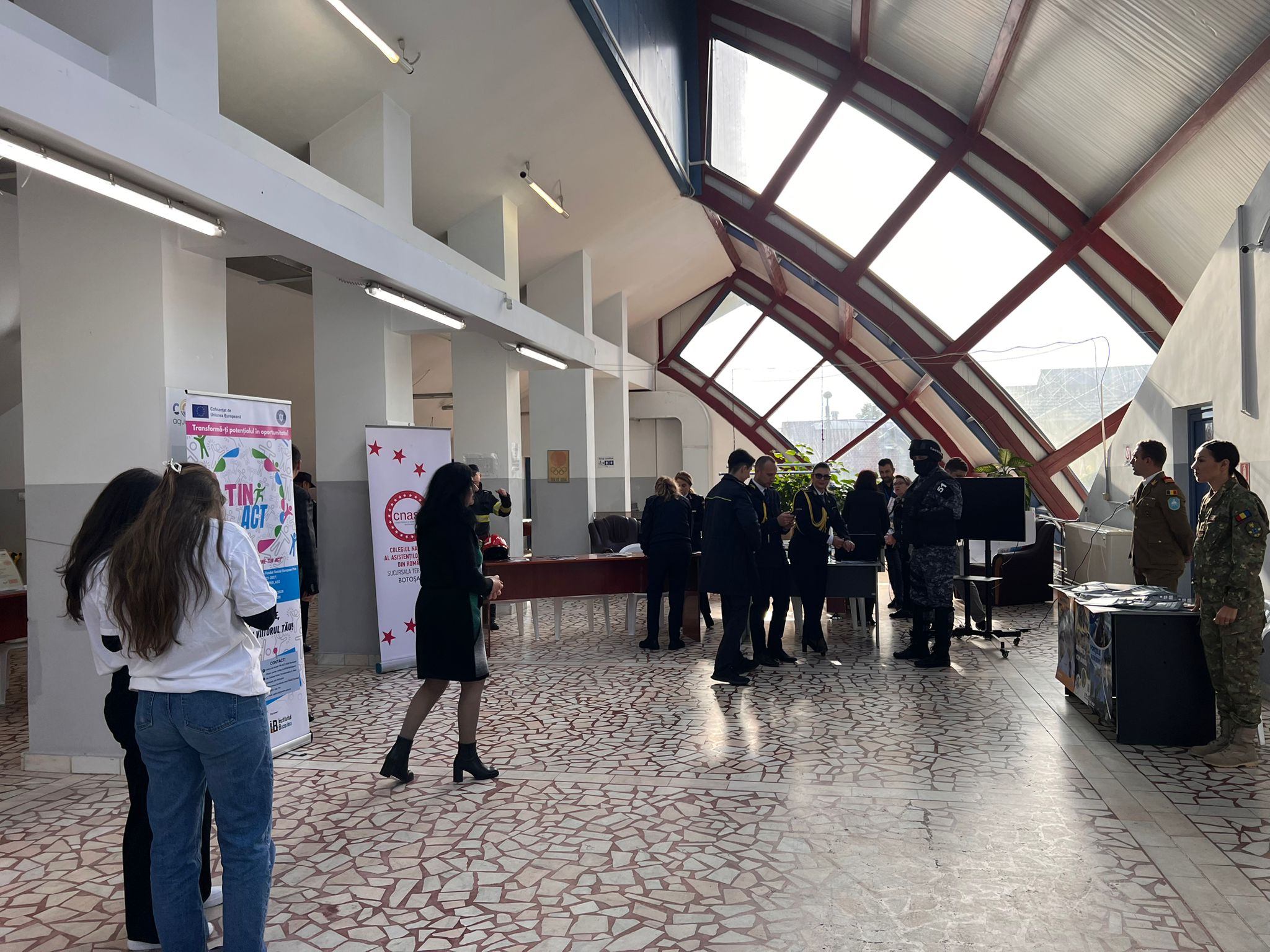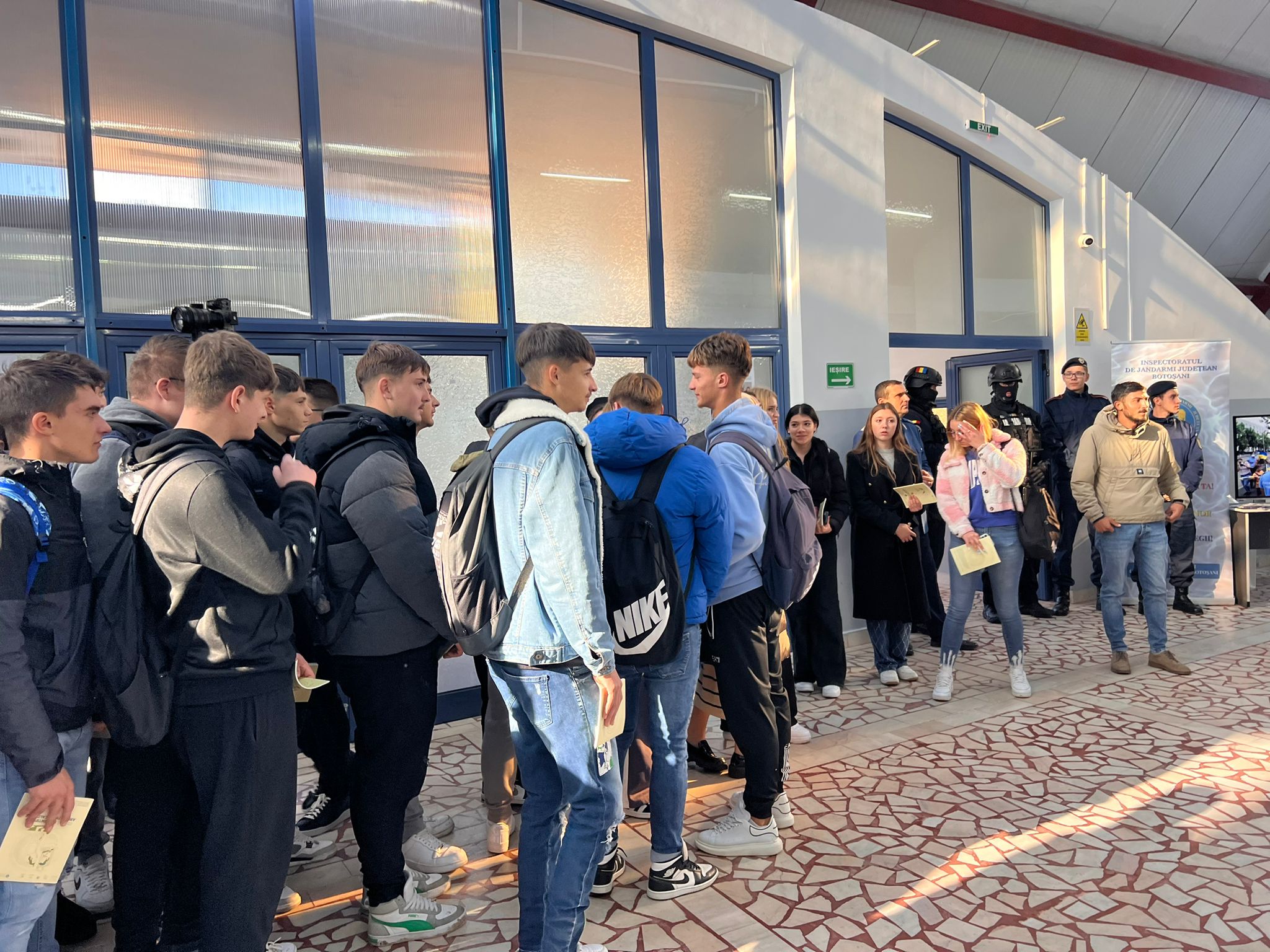La bursă au ajuns și reprezentanți de la instituțiile MAI, dar și militarii pentru a fi promovate ofertele educaționale din școlile de profil. La eveniment participă inclusiv trupele speciale de la Inspectoratul de Poliție Județean (IPJ).