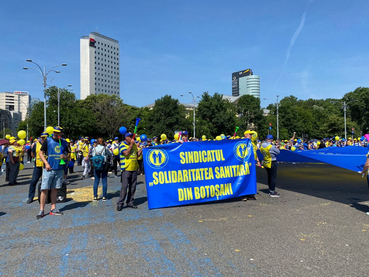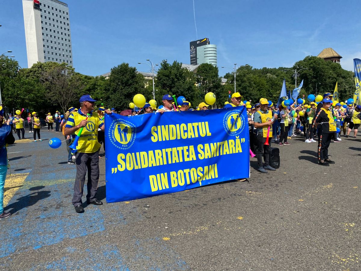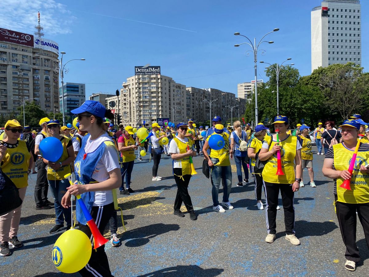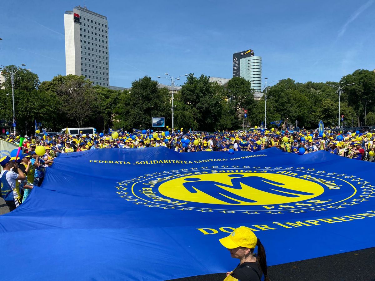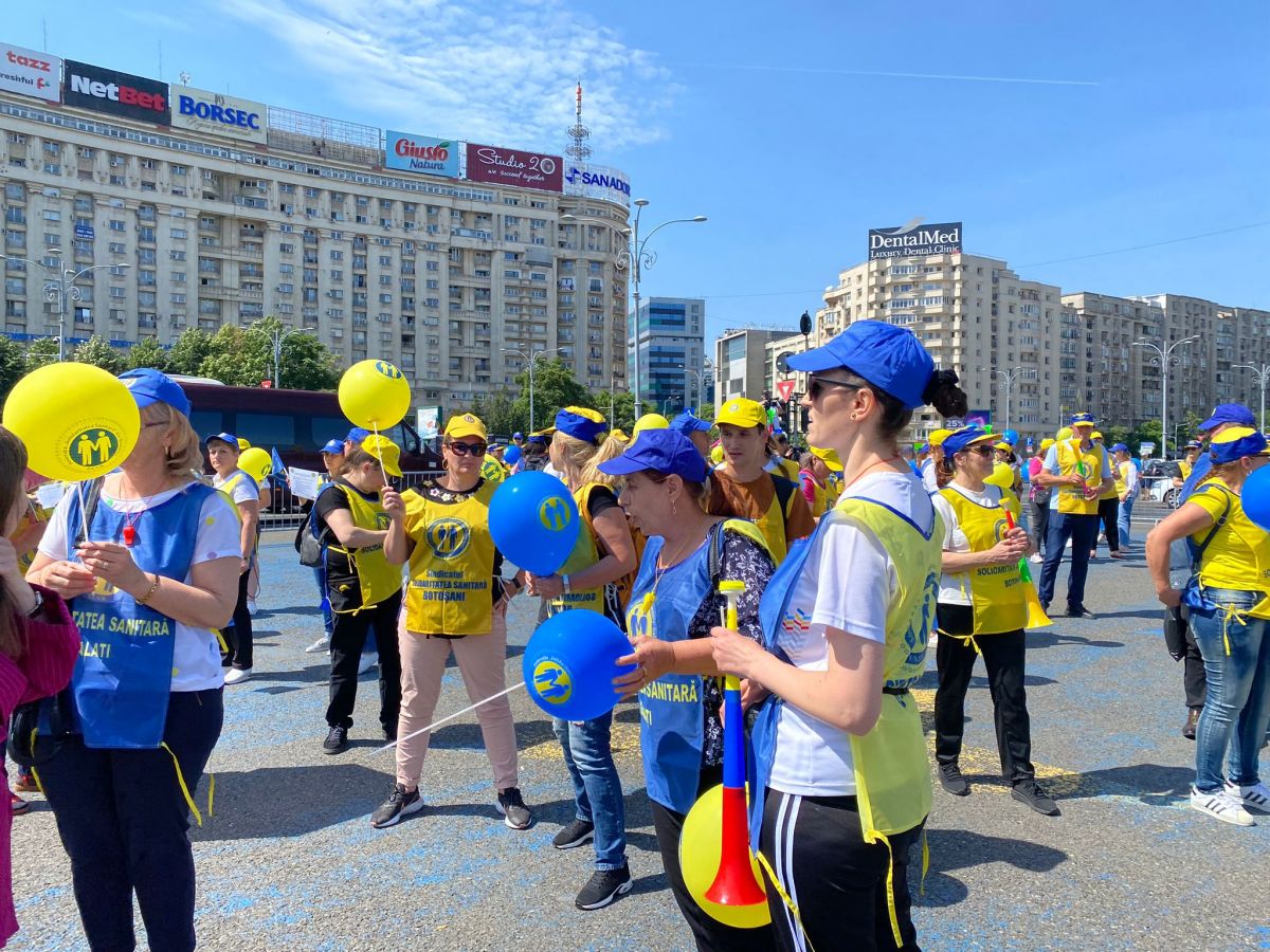 În aceste momente, angajații din Sănătate protestează la București. Acțiunea este organizată de Federația „Solidaritatea Sanitară”.