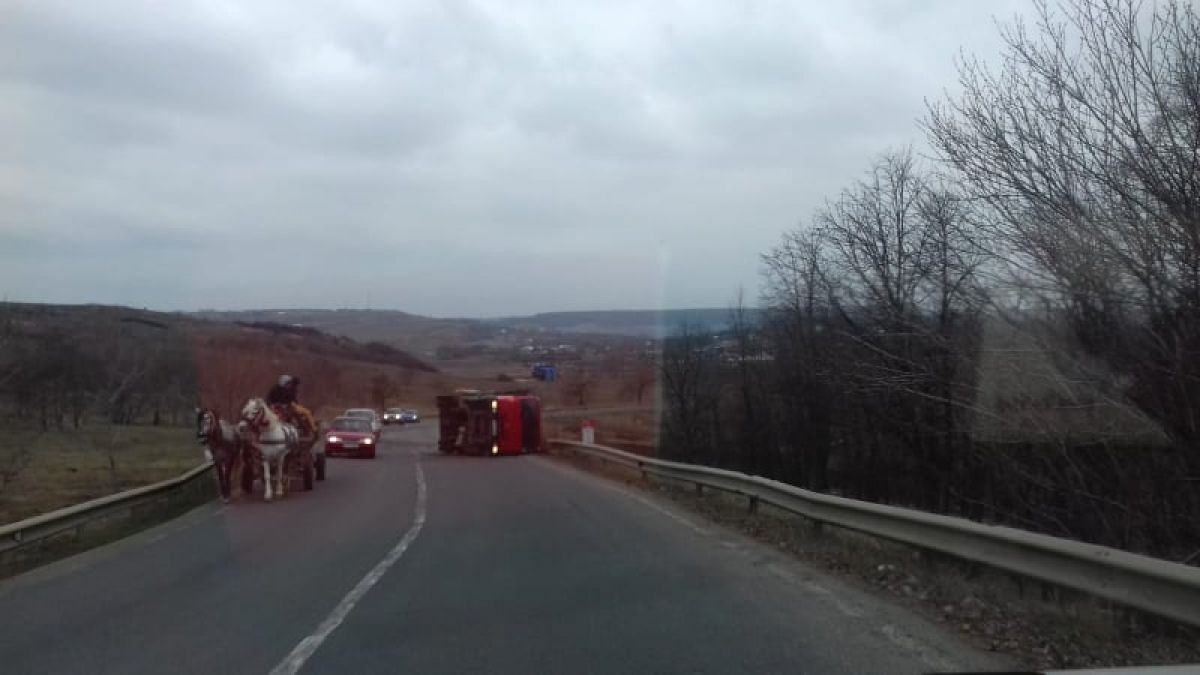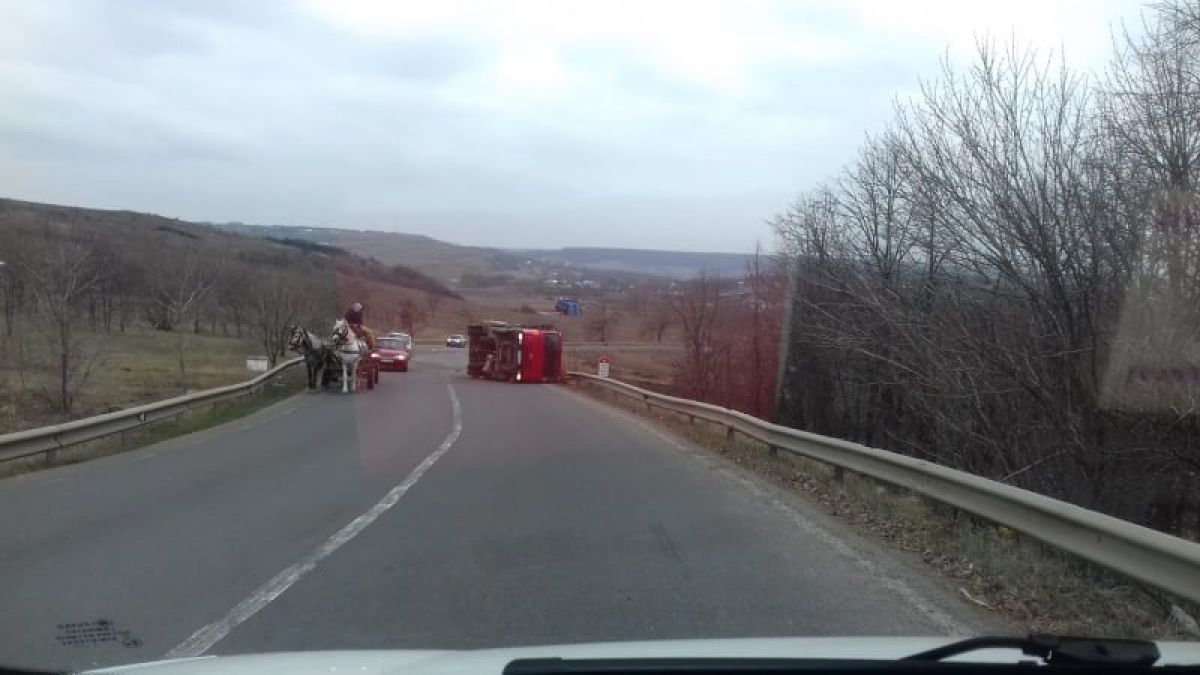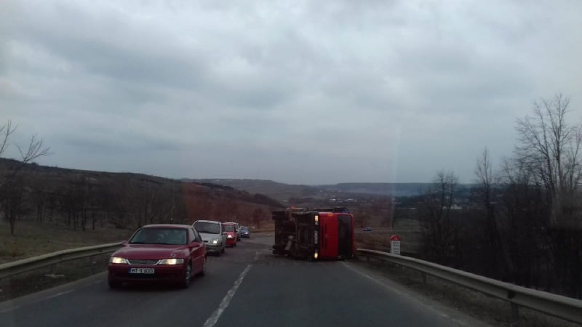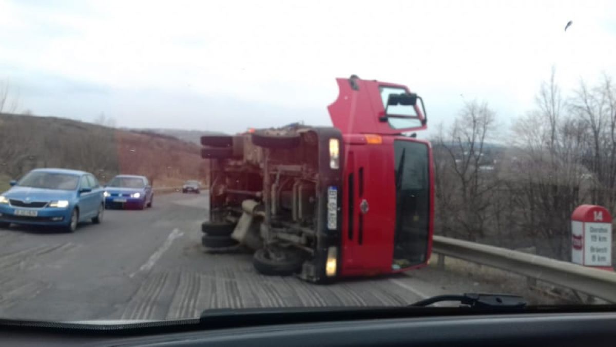 Un vehicul de mare tonaj s-a răsturnat marţi în juru orei 11.15 în dreptul localităţii Leorda.