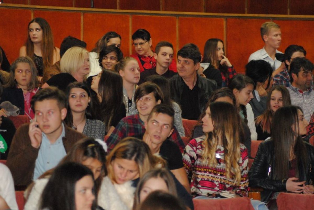La această oră sala instituției de cultură este plină de elevi, profesori, părinți care așteaptă cu nerăbdare să înceapă marea bătălie pentru titlul de Miss și Mister 2015 la Colegiul Național A.T. Laurian. Tinerii nu au venit cu mâinile goale, ci au adus cu ei mai multe pancarte pe care sunt inscripționate numele concurenților. Alții au veni cu baloane fosforescente, pe care au desenat diferite fețe. În câteva minute evenimentul va lua startul, iar concurenții rând pe rând vor defila în fața juriului.