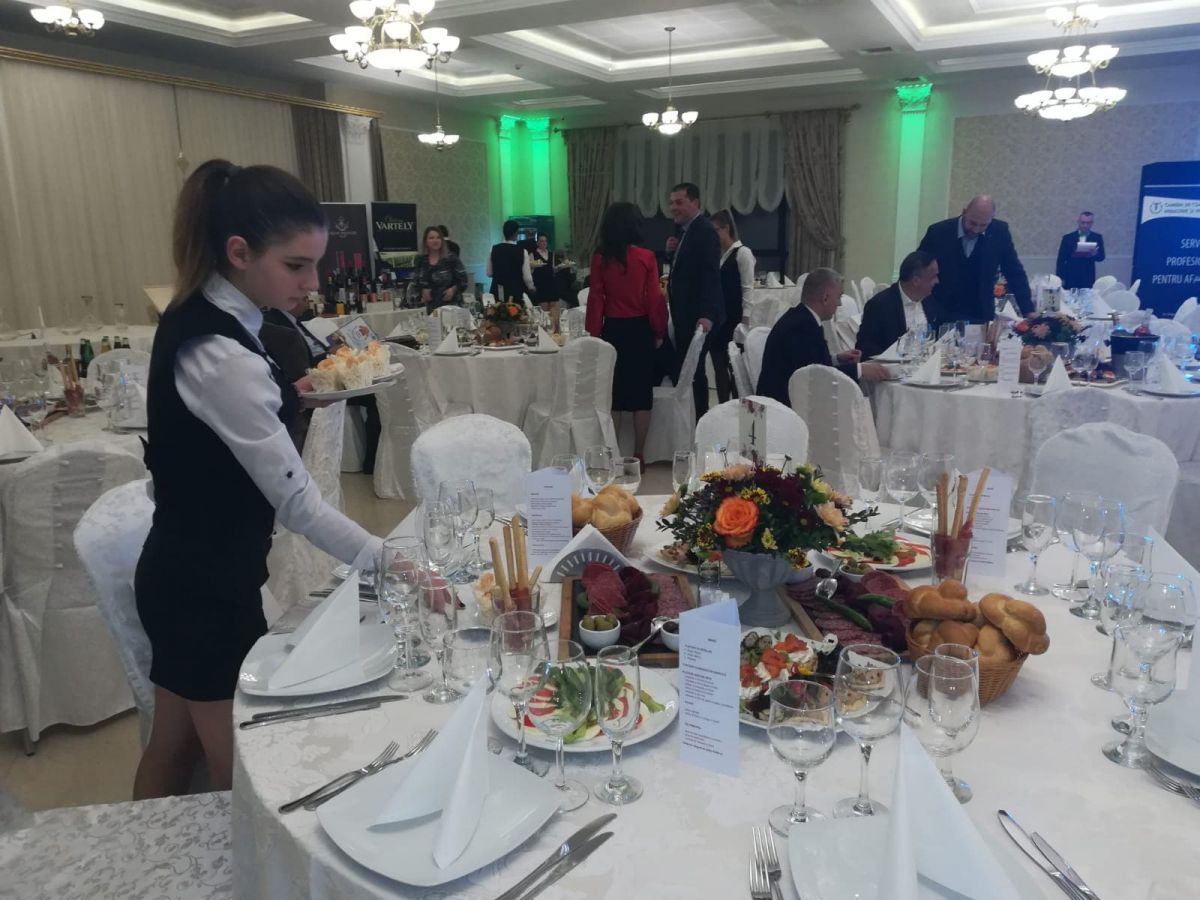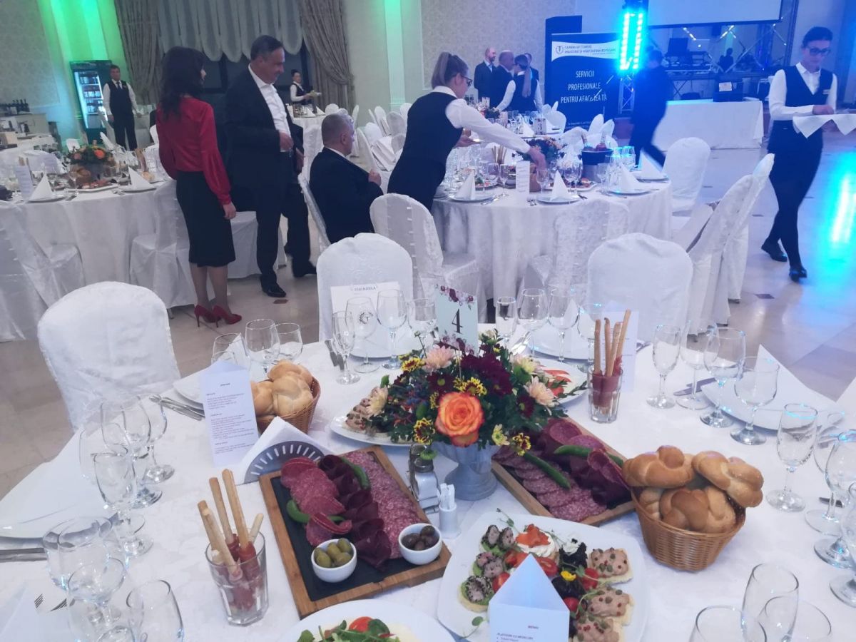 Începând cu ora 18.00 afaceriștii și-au făcut simțită prezența fiind așteptați la intrare de hostess iar la mese cu mâncăruri și băuturi fine.