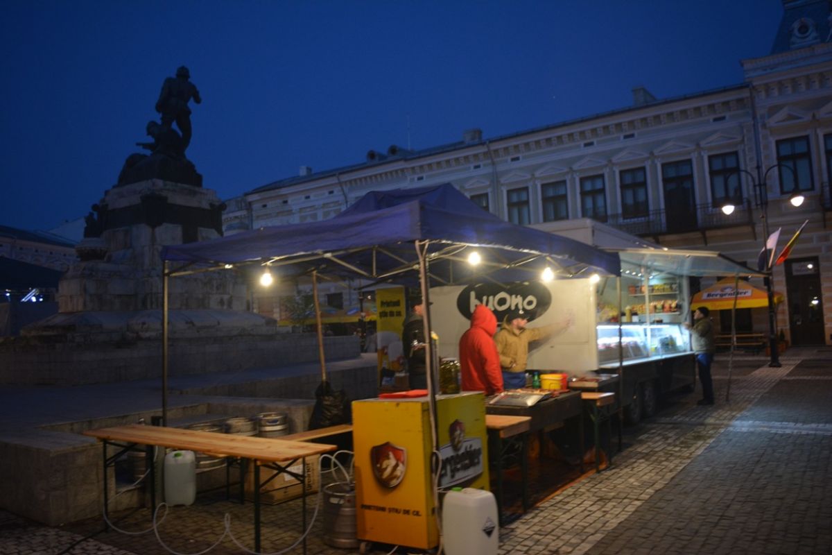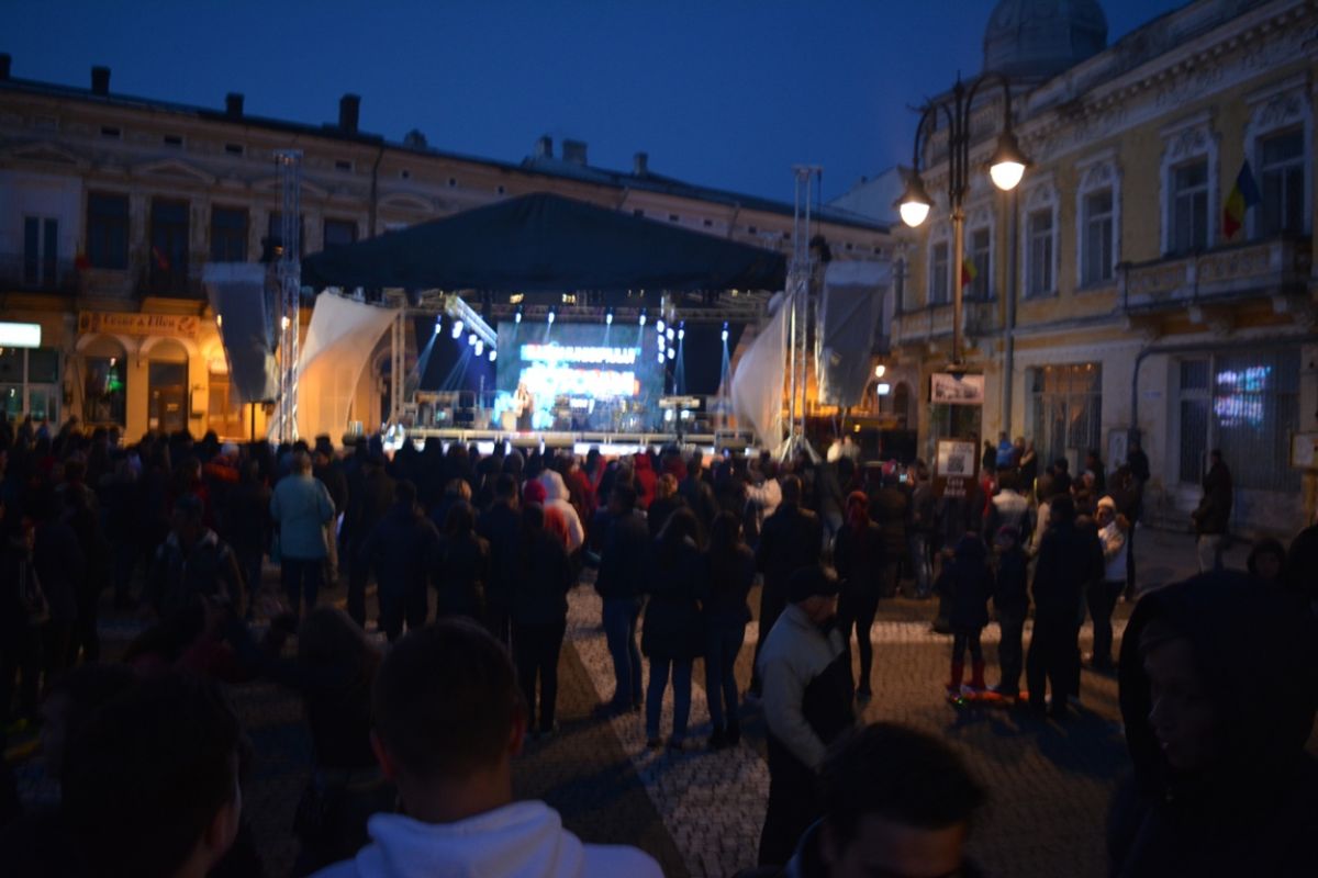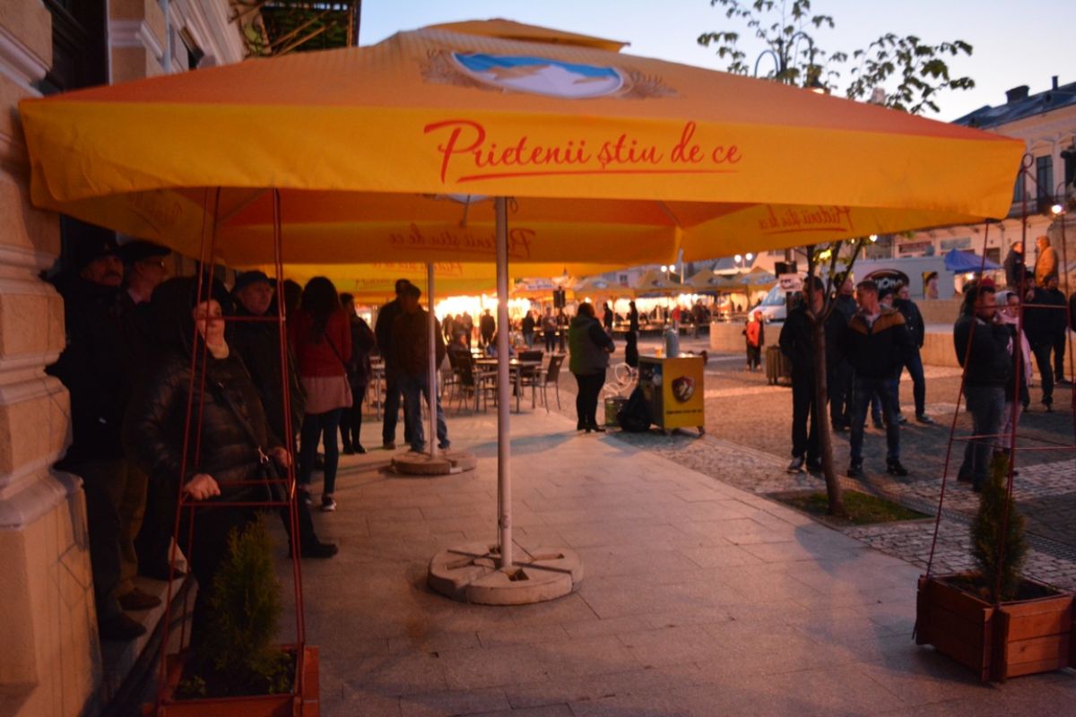 Frigul îşi spune totuşi cuvântul astfel încât terasele amenajate în Piaţa 1 Decembrie 1918 sunt pe trei sferturi goale, cozile de la mititei, bere şi colaci secuieşti din alţi ani devenind acum o amintire. Tot aşa cum şi o amintire au ajuns şi corturile din spatele scenei în care artiştii se pregăteau pentru recitaluri şi care acum lipsesc cu desăvârşire. În aceste momente pe scenă se află interpreta de muzică populară Carmen Cornaci, câţiva tineri apucându-se de dans.