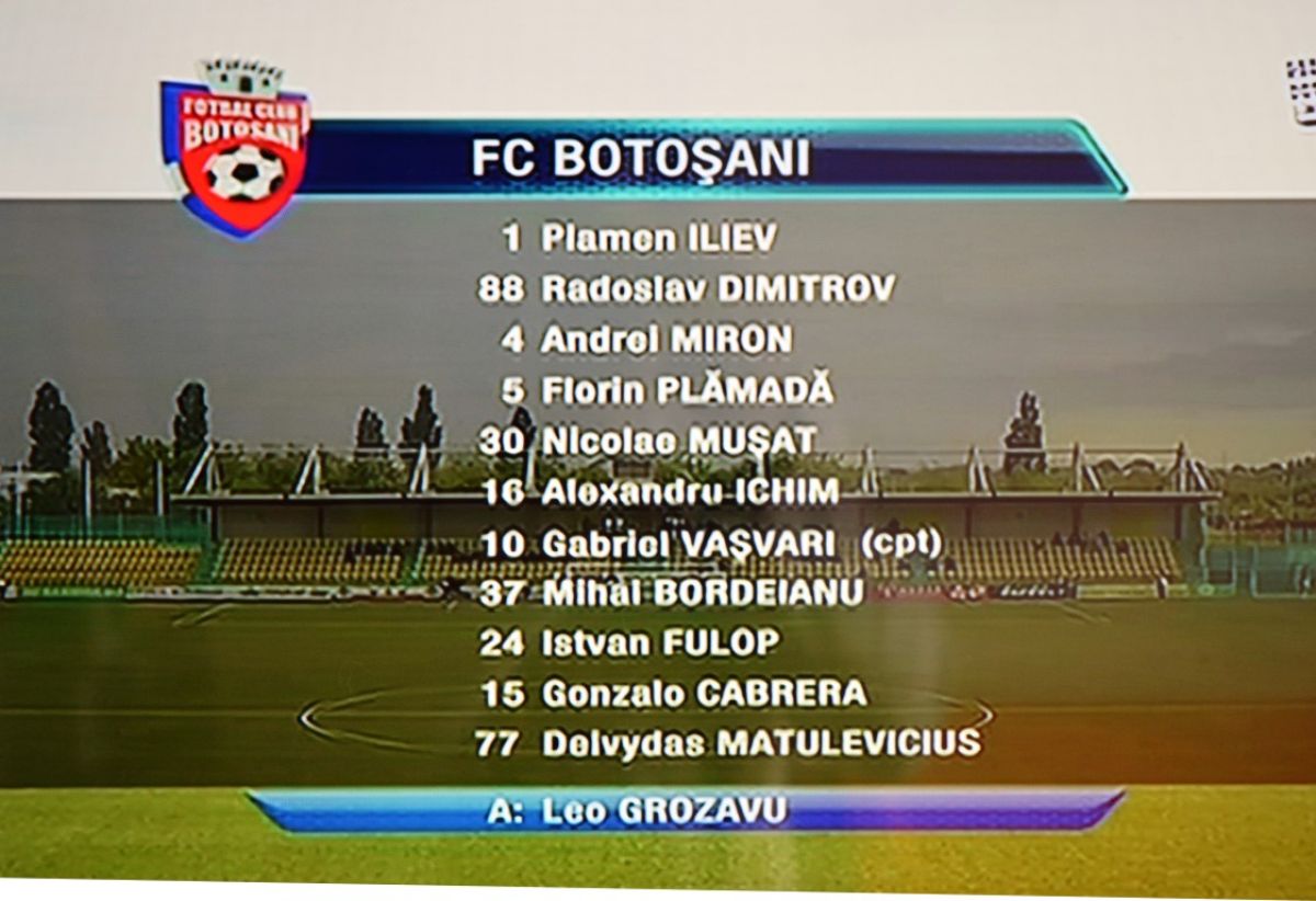 Leo Grozavu nu poate conta în această importantă confruntare pe Michael Ngadeu, suspendat din cauza cumului de cartonaşe, banderola fiind preluată de Gabriel Vaşvari. În aceste condiţii, tehnicianul botoşănenilor a început partida cu următorul 11:
