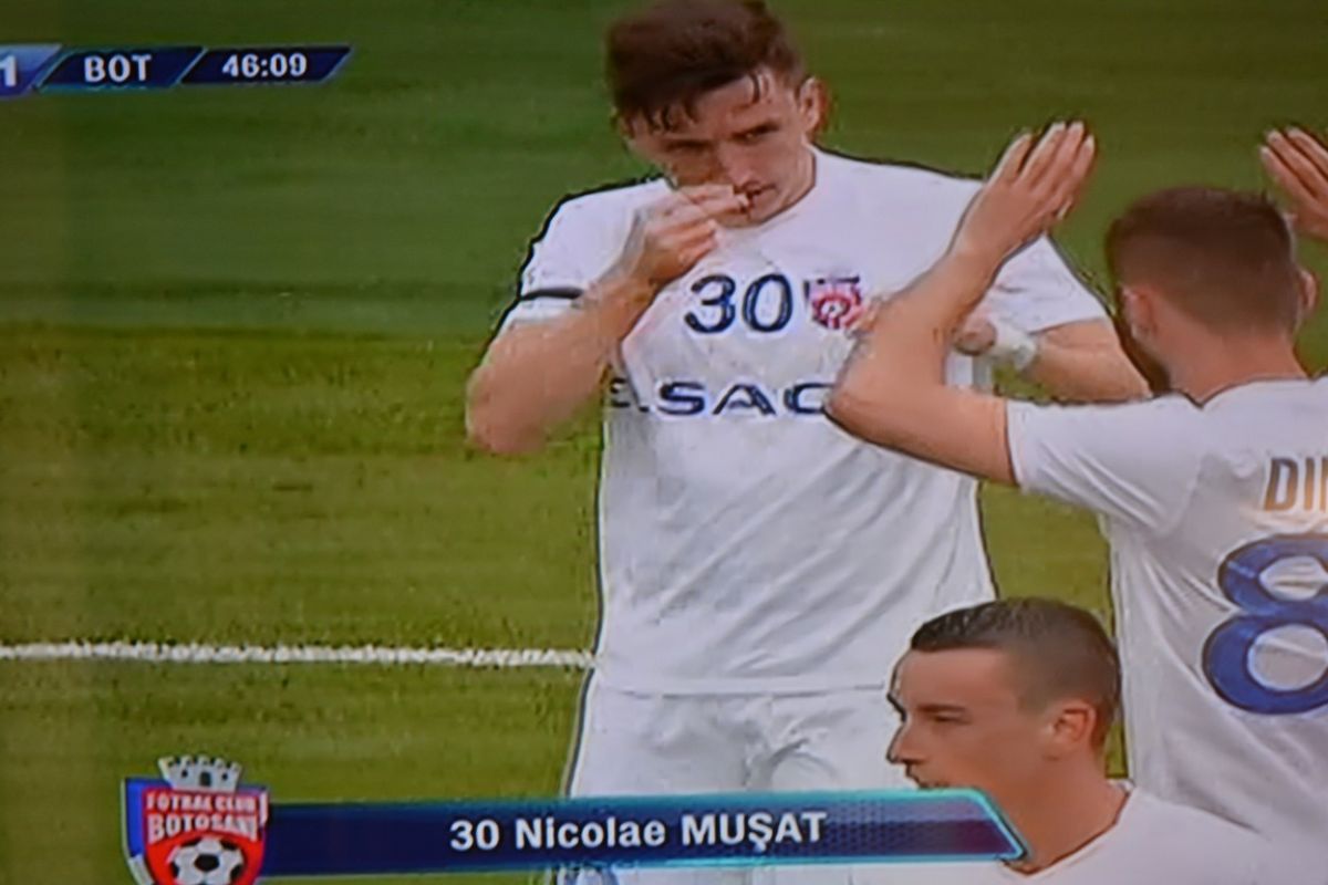 Min 46: Imediat după reluare Muşat trimite mingea cu capul în poartă după o centrare a lui Dimitrov