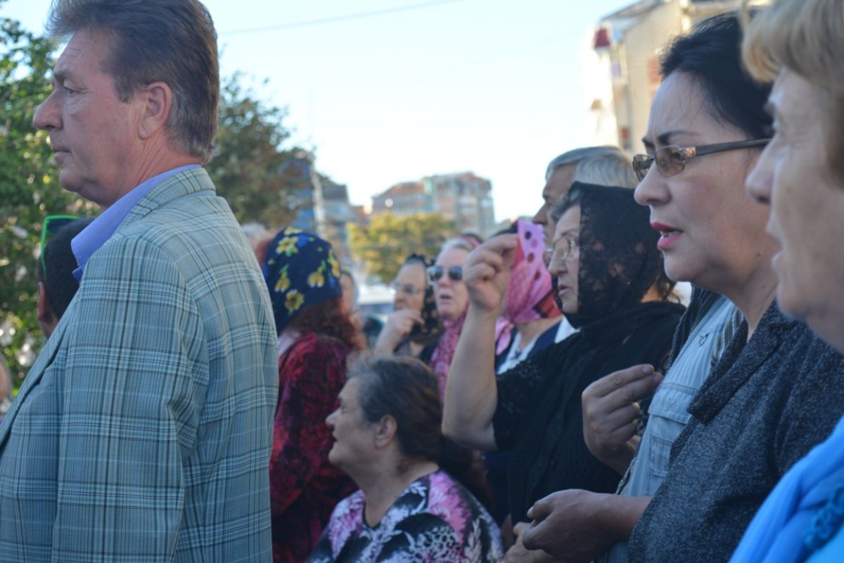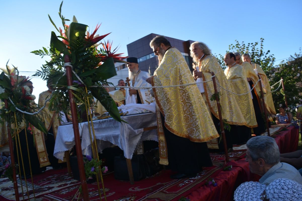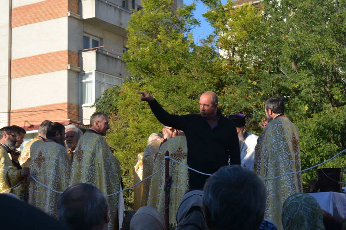În debutul serviciului religios desfăşurat pe un podium montat pe scuar s-a sfinţit apa.