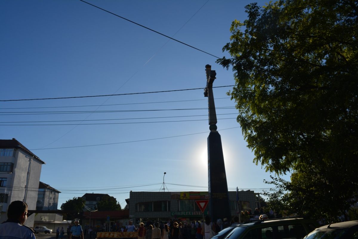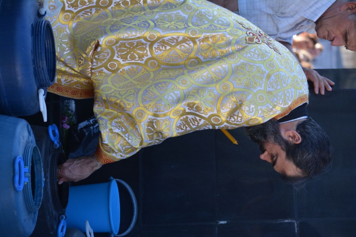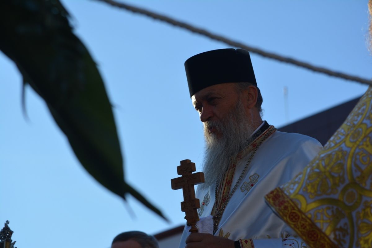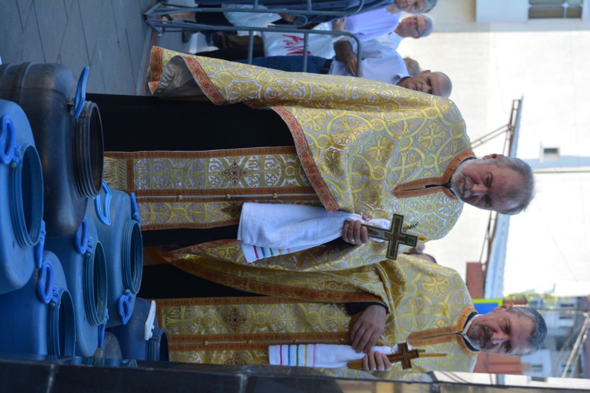 În debutul serviciului religios desfăşurat pe un podium montat pe scuar s-a sfinţit apa.