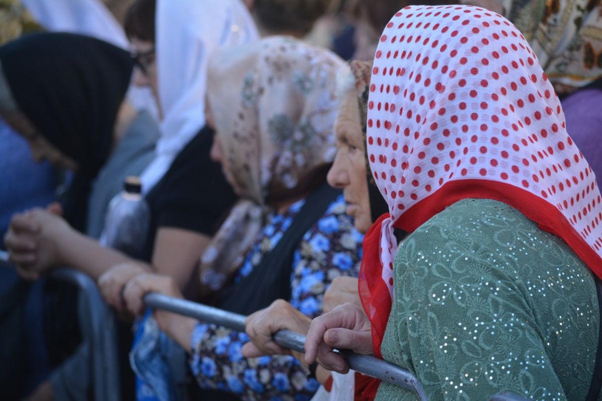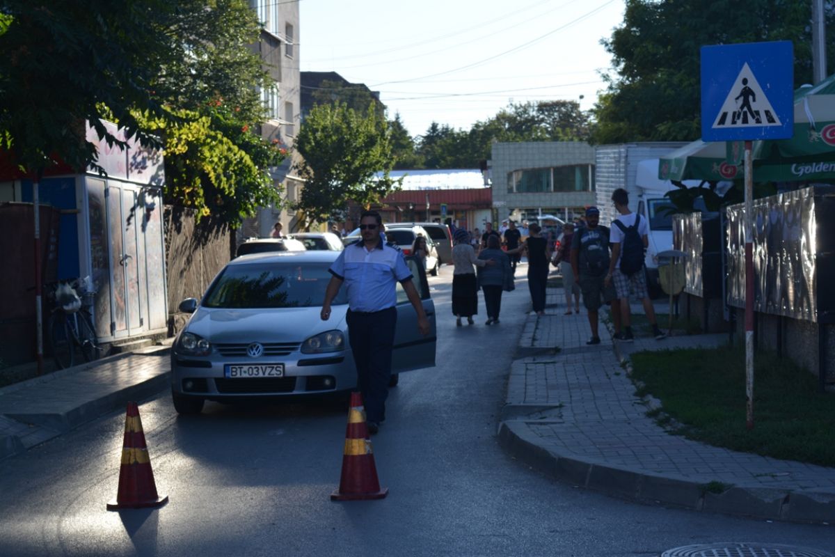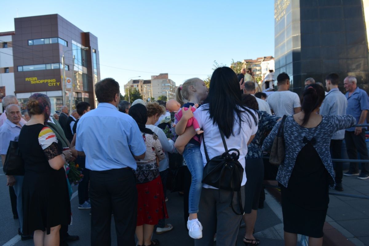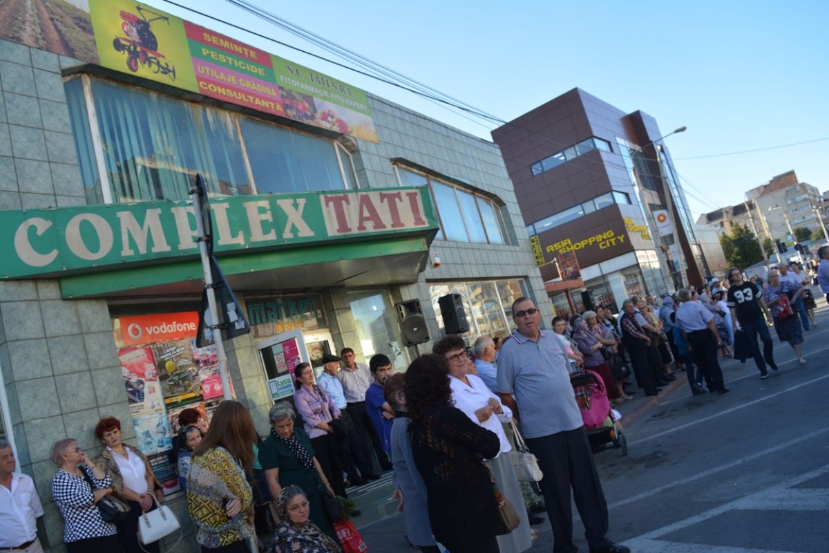 Credincioşii urmăresc slujba atât de pe trotuare, cât şi de pe stradă, circulaţia autovehiculelor fiind oprit în zonă.