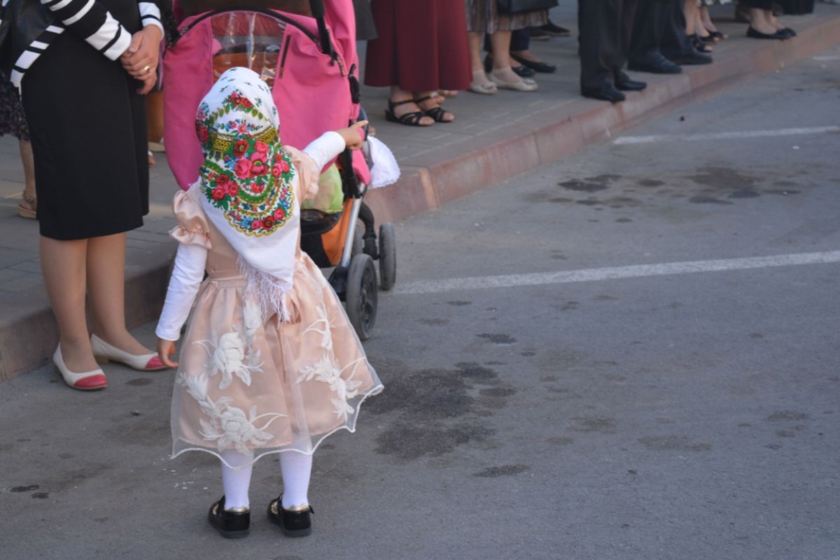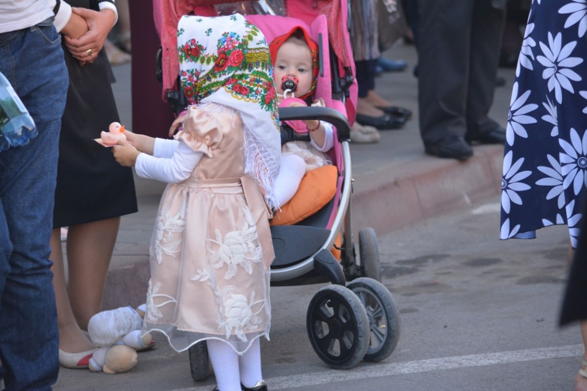 Bunici, părinţi, copii, micuţi în căruţ şi oameni în scaun cu rotile iau parte la eveniment.