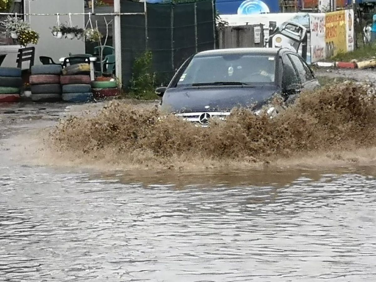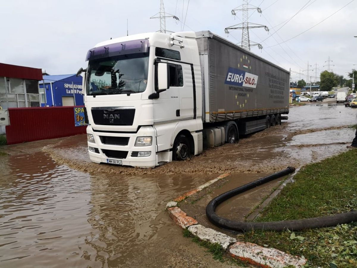 În zona de la intrarea la SC Modern Calor SA s-a format o baltă imensă, care în unele locuri atinge şi jumătate de metru adâncime. Apa nu a acoperit doar carosabilul propriu-zis ci şi trotuarele care de altfel nici nu se mai disting. Majoritatea conducătorilor auto ajunşi în această parte a urbei fac rapid cale întoarsă când văd ce se întâmplă.