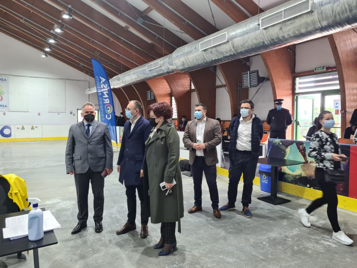 Centrul de vaccinare din patinoar este vizitat în aceste momente de prefectul Dan Nechifor, de directorul Direcției de Sănătate Publică, Monica Adăscăliței, precum și de primarul Cosmin Andrei.